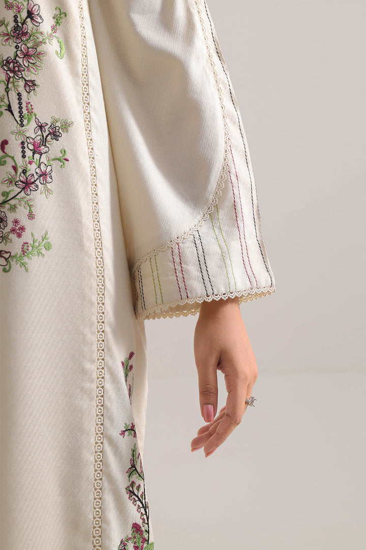 Understated Elegance Meets Festive Flair In This SAYA Luxury Pret Embroidered Cotton Jacquard Stitched 3-Piece In Soft Beige. The Premium Cotton Jacquard Fabric Boasts A Refined Texture That Captures Light Gently, While The Intricate Embroidery Lends Artistic Depth Without Detracting From The Neutral Palette. With The Shirt, Dupatta, And Trouser Harmoniously Designed To Complement One Another, This Ready-To-Wear Ensemble Offers A Polished Silhouette Right Out Of The Box. Flawless Stitching, Crisp Seams, And Thoughtful Detailing Ensure That The Set Maintains Its Structure With Grace. Perfect For Weddings, Festive Events, Or Elegant Day Occasions, It Provides A Balanced Blend Of Luxury, Wearability, And Subtle Sophistication.