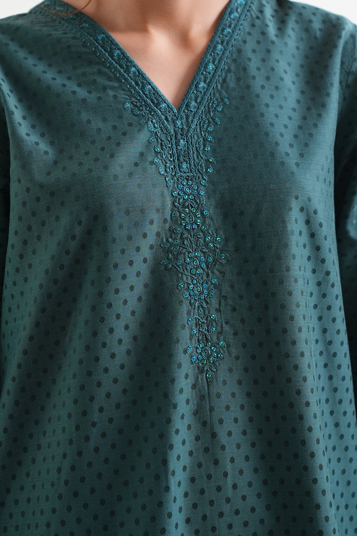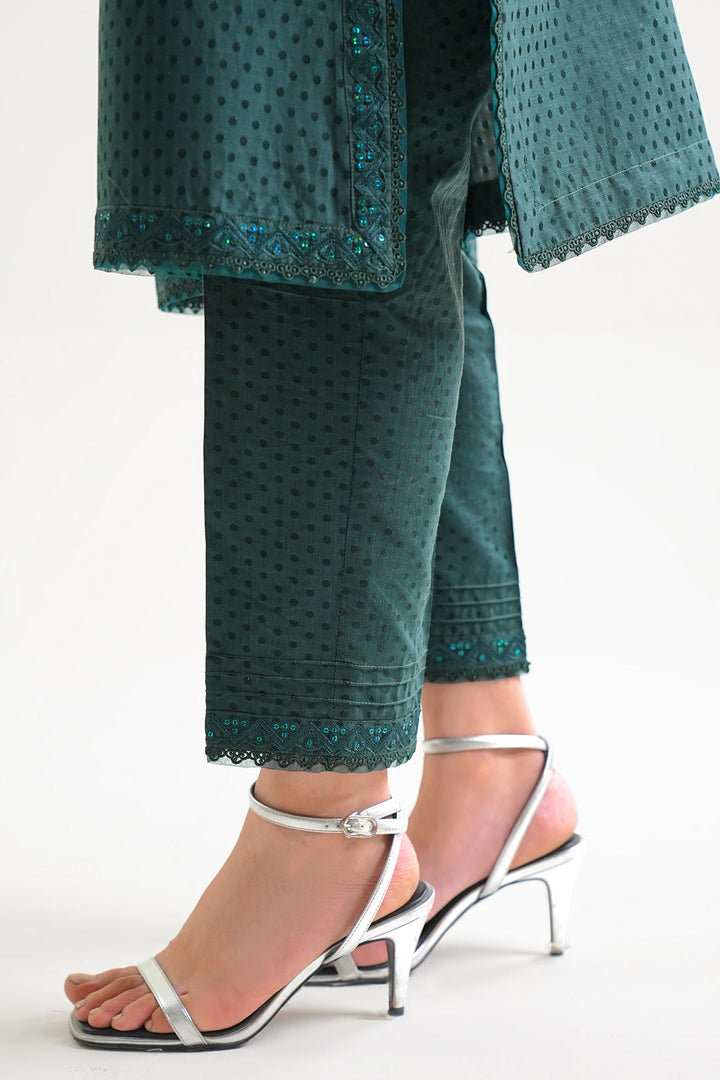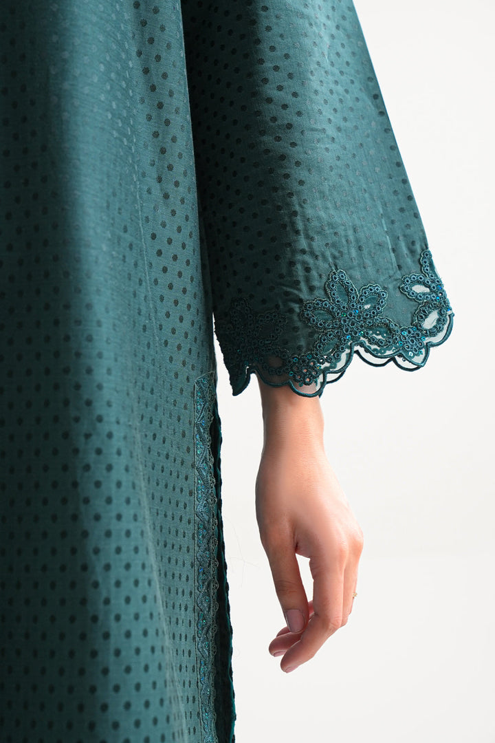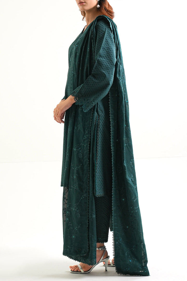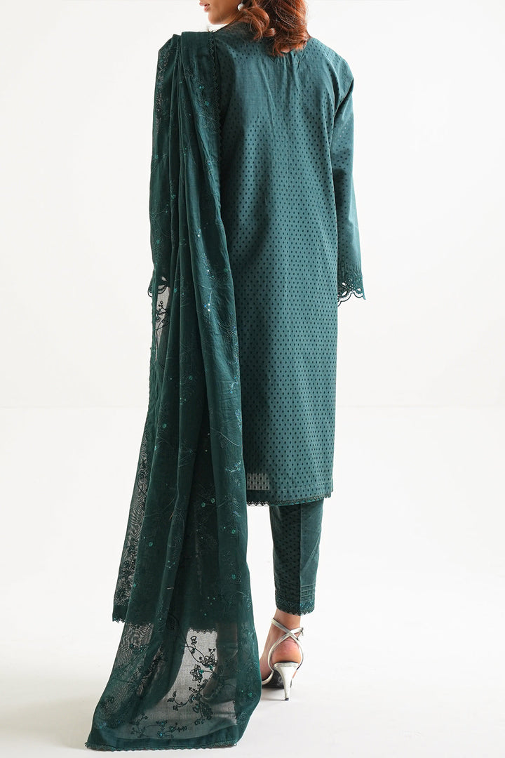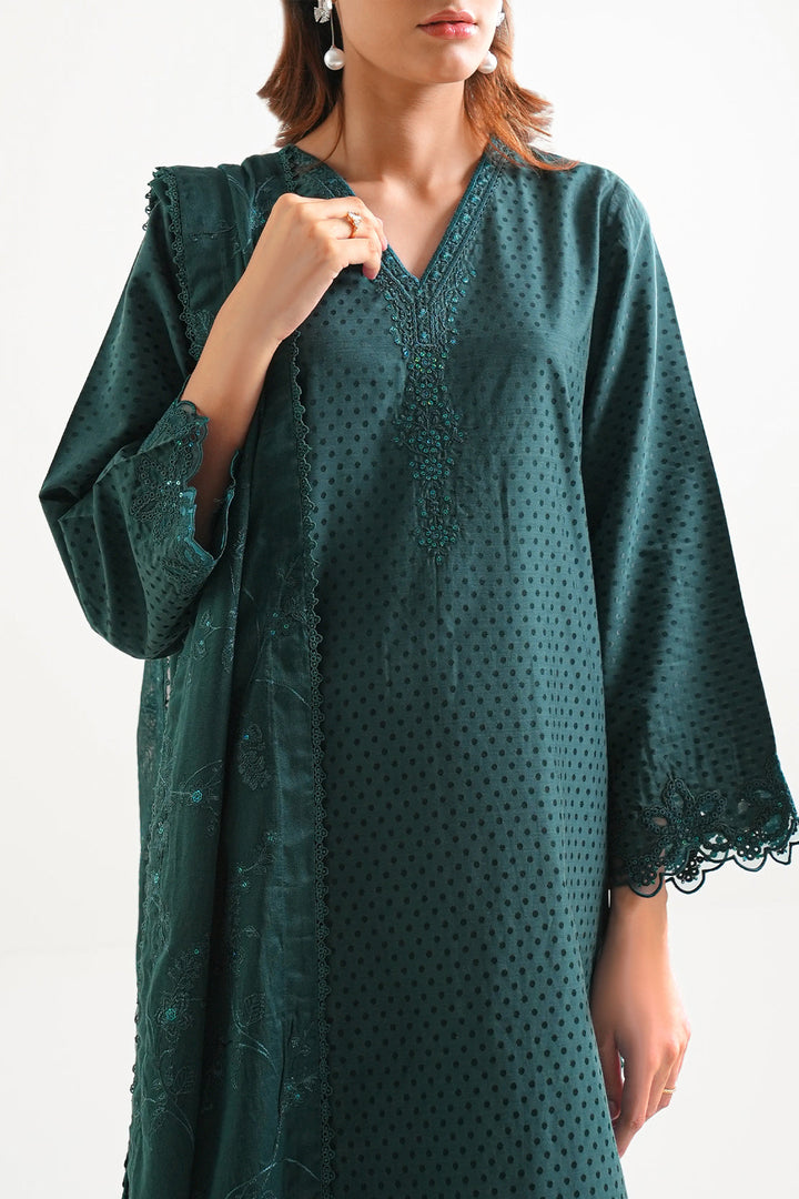 Elevate Your Wardrobe With SAYA’s Luxury Pret Embroidered Cotton Jacquard 3-Piece Set In Dark Green. Crafted From Premium Cotton Jacquard Fabric That Offers Rich Texture And Breathable Comfort. The Ready-To-Wear Shirt Features Elegant Embroidery, Paired With A Matching Trouser And Stylish Dupatta For A Complete Coordinated Look. The Deep Dark Green Shade Delivers Sophistication and Versatility—Ideal For Smart Casual Events, Festive Occasions, Or Elegant Everyday Wear.