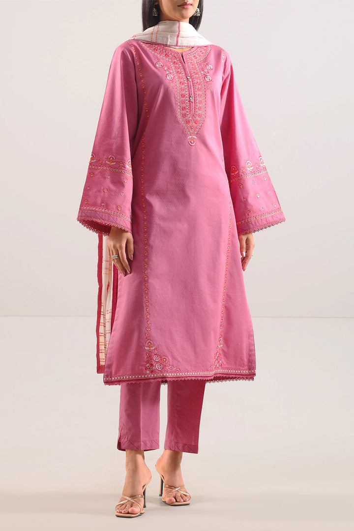 Soft Yet Striking, This SAYA Luxury Pret Embroidered Cotton Jacquard 3-Piece In Pink Offers Festive Elegance With Effortless Style. The Premium Cotton Jacquard Fabric Boasts A Subtle Texture That Adds Depth To The Gentle Pink Hue. Intricate Embroidery Delicately Embellishes The Ensemble, Enhancing Without Overpowering. Ready-To-Wear With Coordinated Shirt, Dupatta, And Trouser, The Set Comes Together With Impeccable Stitching And Clean Lines. Ideal For Weddings, Celebratory Gatherings, Or Elegant Day Events, This Ensemble Delivers A Perfect Blend Of Comfort, Luxury, And Poised Appeal.