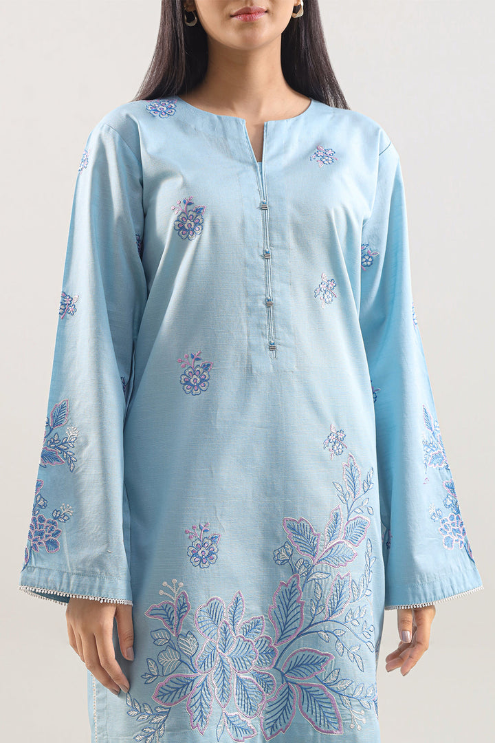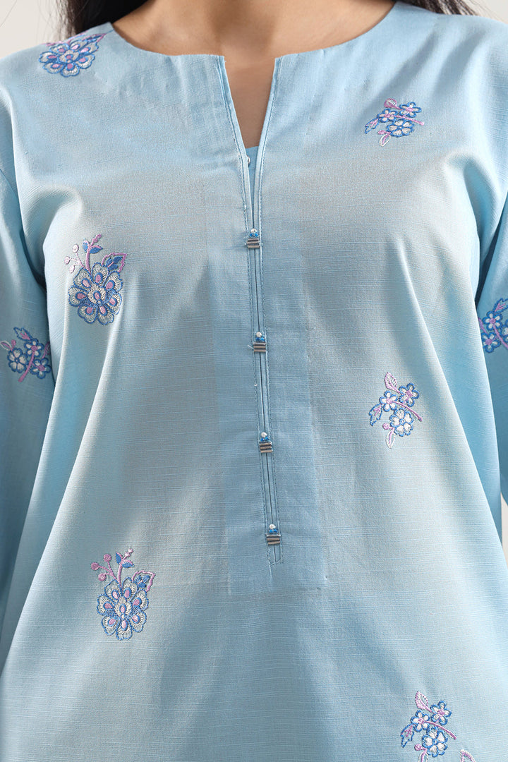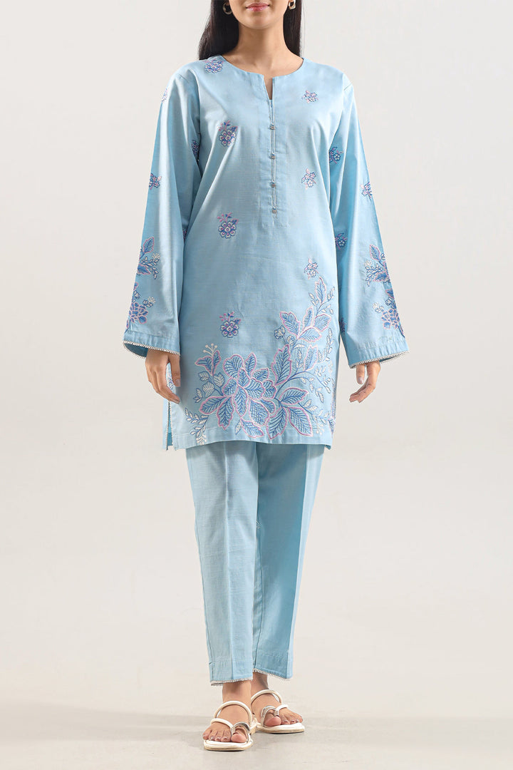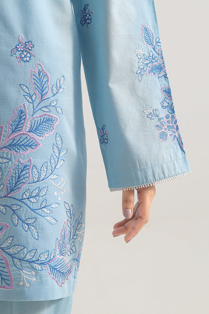 Elevate Your Wardrobe With The SAYA Luxury Pret Embroidered Slub Cotton 2-Piece Set In Sky Blue, Crafted From Premium Slub Cotton fabric That Offers Soft Texture, Subtle Irregularities For Character, And Comfortable Breathability. The Ready-To-Wear Shirt Features Delicate Embroidery Across The Front Panel, While The Matching Trouser Completes The Coordinated Ensemble With Ease. The Fresh Sky Blue Hue Brings A Calm, Elegant Vibe—Ideal For Daytime Events, Smart-Casual Outings, Or Elevated Everyday Wear. This Set Combines Luxurious Fabric, Thoughtful Detailing, And Ready-To-Wear Convenience.
