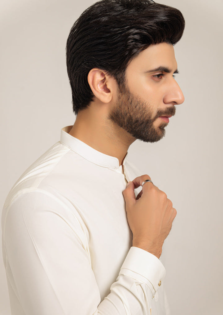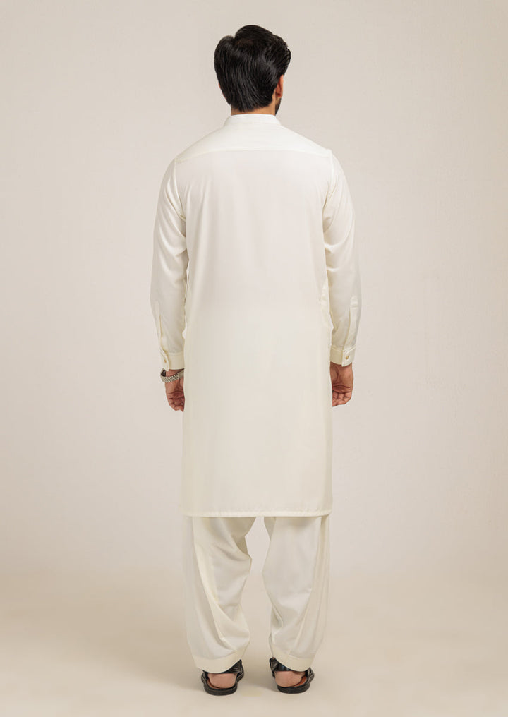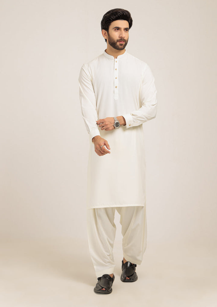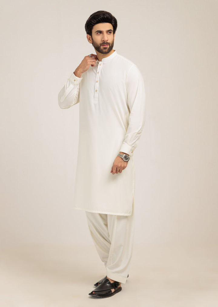 O-White-Blended-Kurta Shalwar - (M25KSS1013)