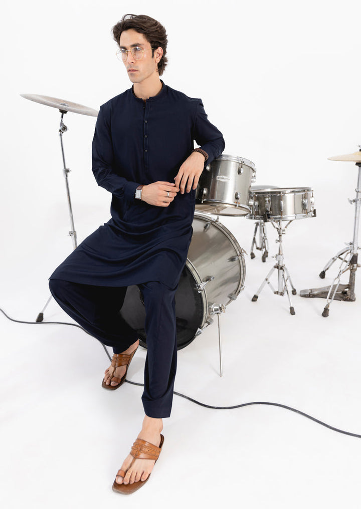 Navy-Blended-Kurta Shalwar - (M25KSS1018)
