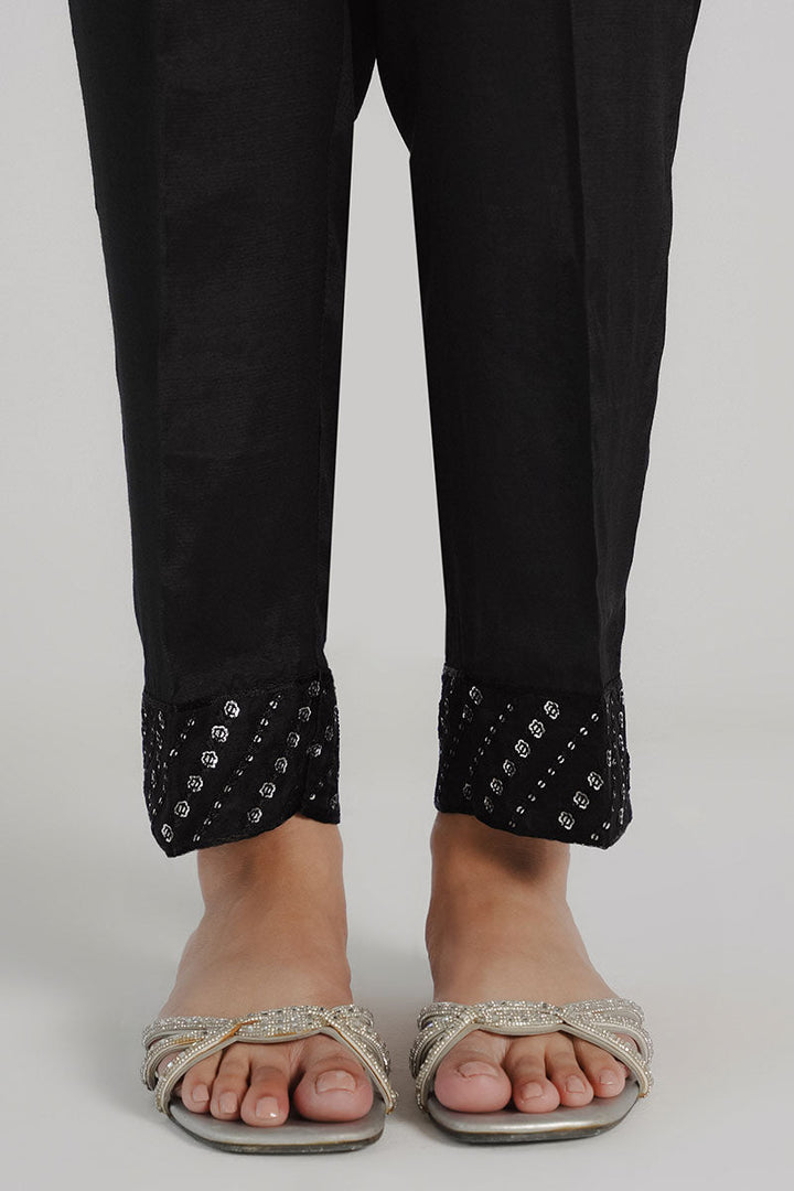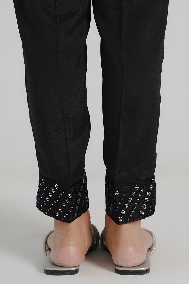 SILK DYED AND EMBROIDERED STRAIGHT FITTED PANTS