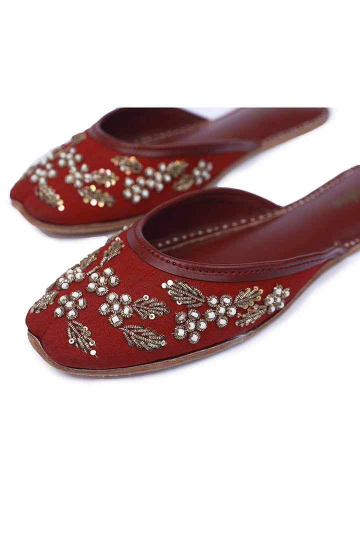 The most desirable yet comfortable pair khussas you'll come across! Marie comes in an elegant maroon color with timeless dabka work.