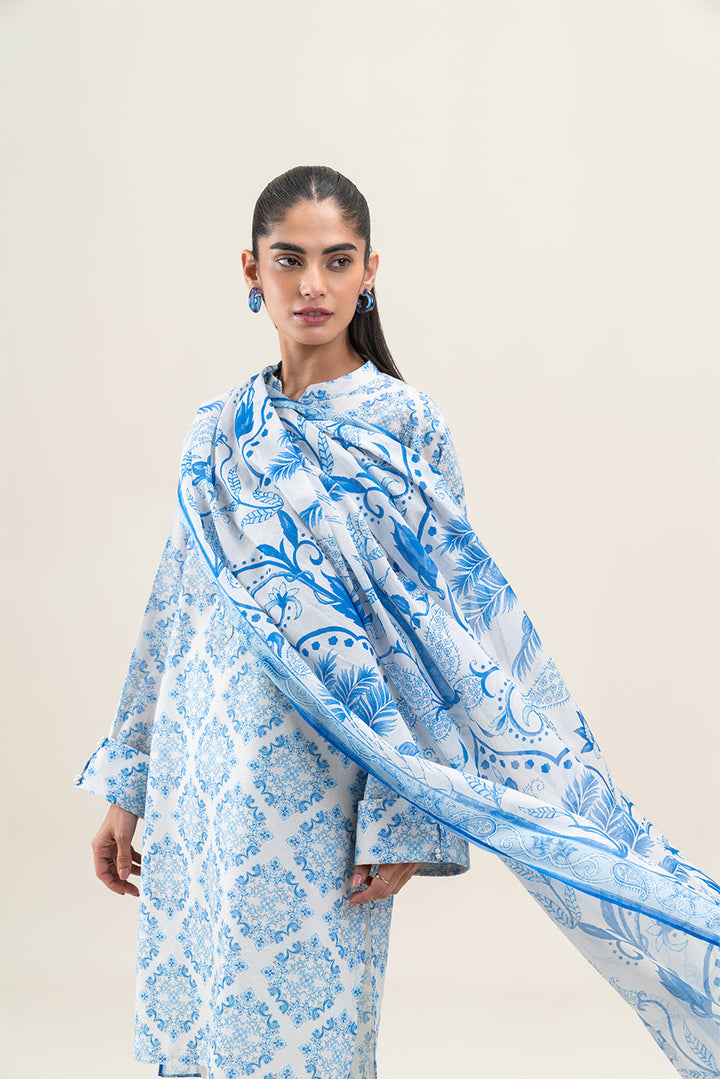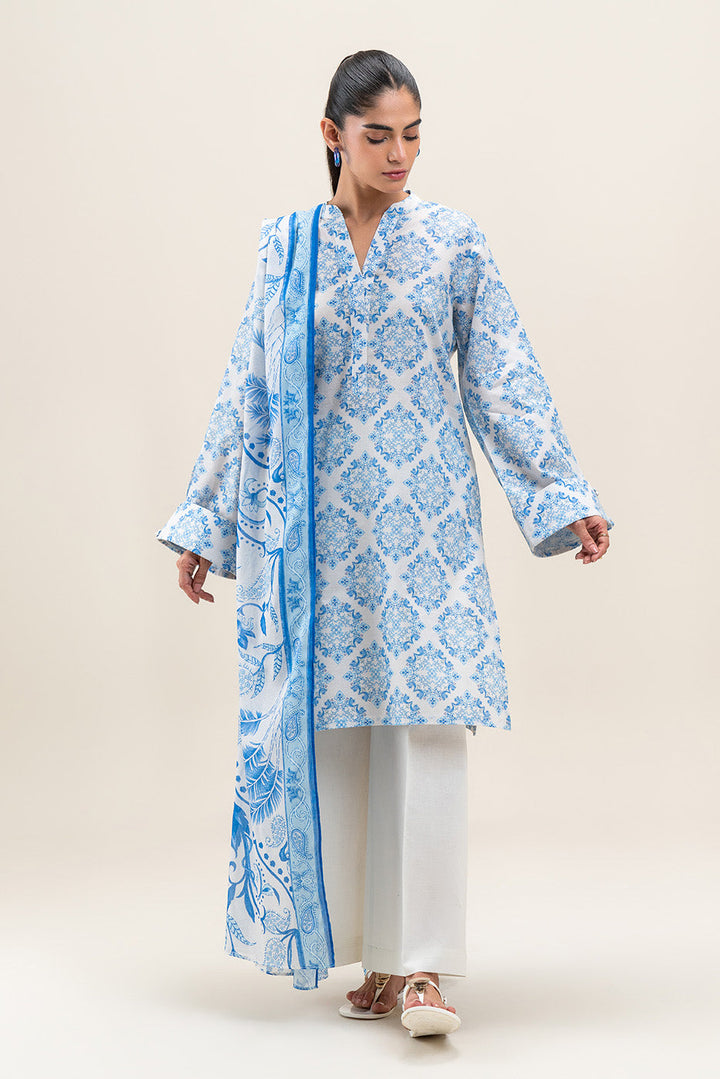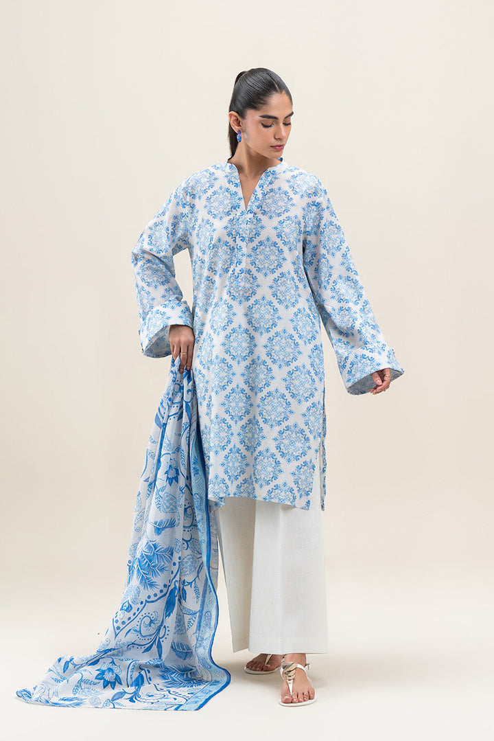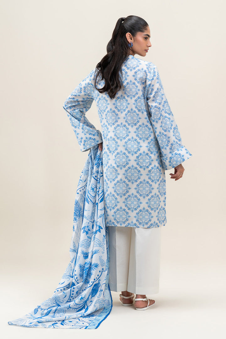 2 PIECE PRINTED LAWN LAWN SUIT-SLATE BLUE (UNSTITCHED)