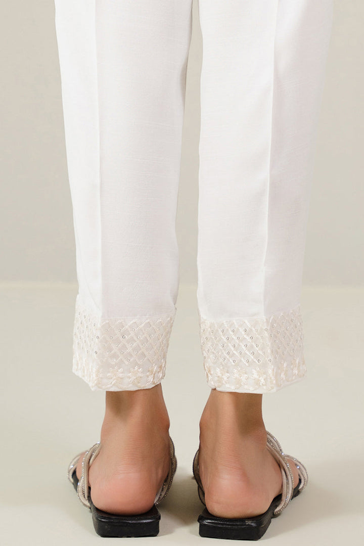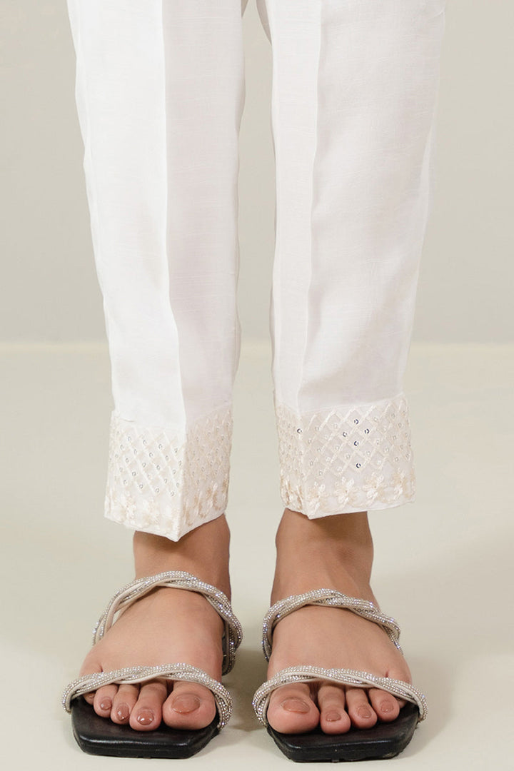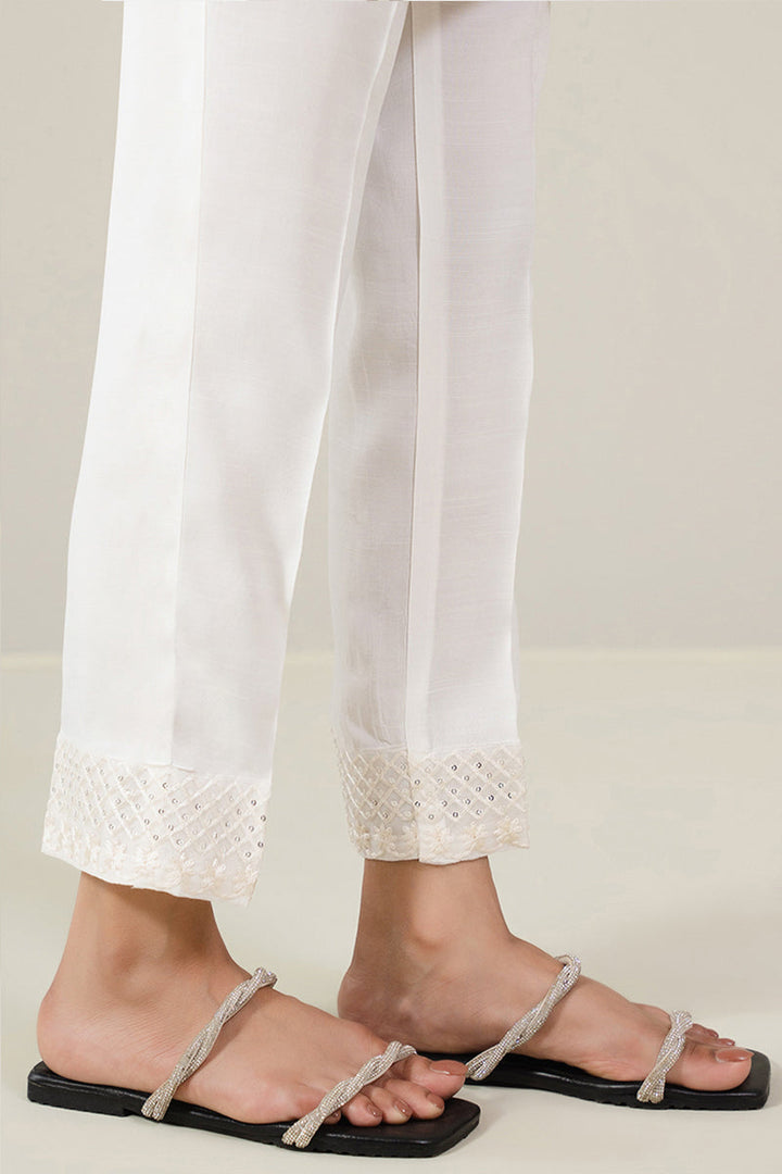 RAW SILK SEQUIN EMBROIDERED STRAIGHT FITTED PANTS