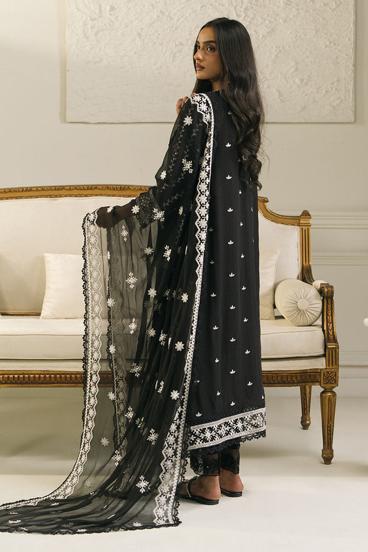 The MIDNIGHT STAR-2 PC includes an A-line silk shirt, adorned with front and back sequin embroidery and pearl button back opening. The neckline features heavily sequin embroidery and round neck lace finishings, while the sleeves also boast sequin embroidery. The accompanying dupatta is also adorned with sequin embroidery and lace finishings, adding an elegant touch to this stunning set.