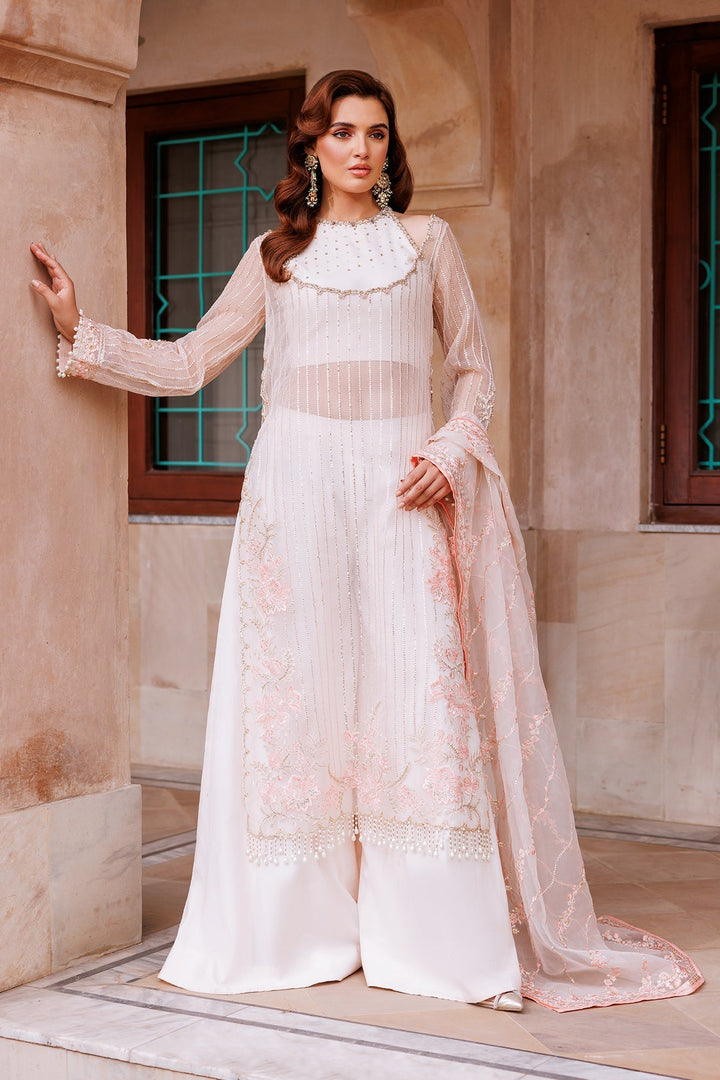 3-Emb Organza Front and back Neck and Side Slits pattei --5Yards 4-Emb Organza Dupatta with Pallu-2.50 Yards