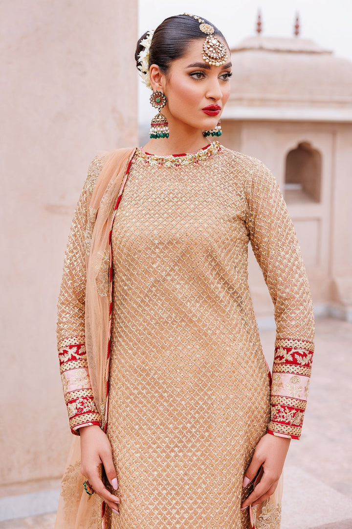 2-Emb Shamoz silk front back and Sleeves border pattei-3yards/Peach
