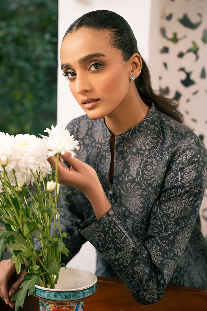 - Experience the elegance and style of our MOONLIT ECHOES-2 PIECE PRINTED KHADDAR SUIT. The printed khaddar shirt exudes sophistication, while the dyed khaddar trouser adds a touch of luxury. Perfect for any occasion, this suit is a must-have for any fashion-forward wardrobe.