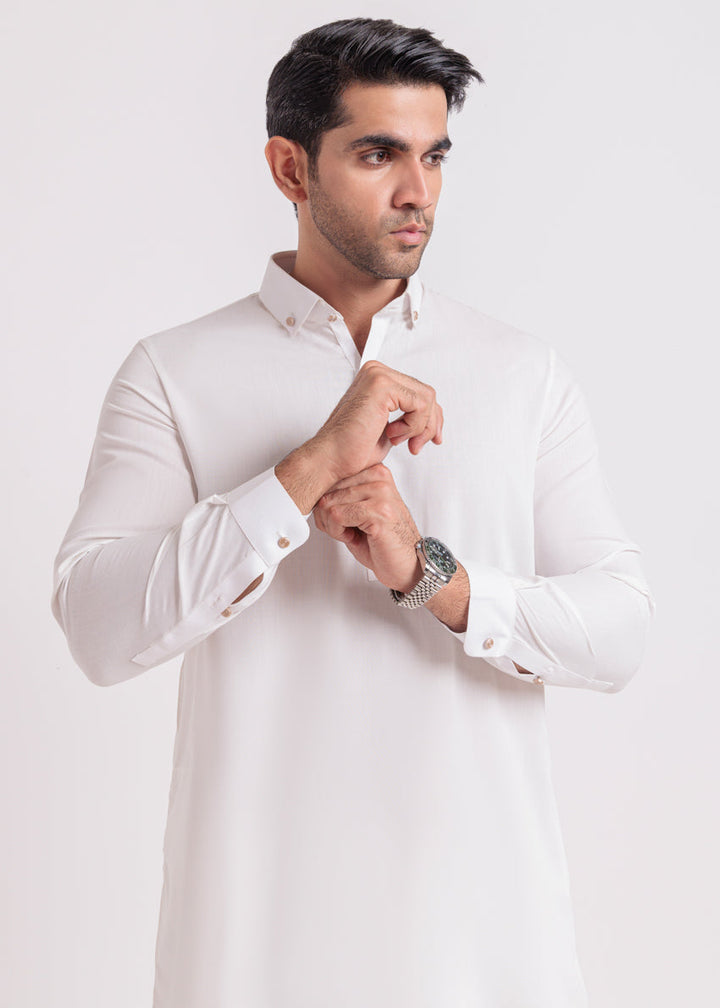 White-Blended-Shalwar Suit - (MPS25SSE2054)