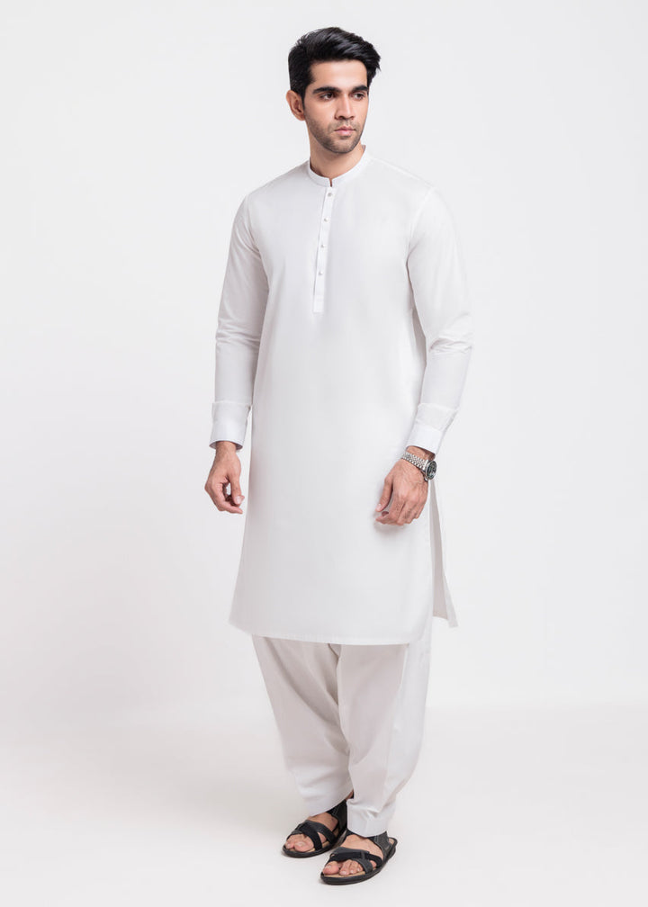 White-Blended-Shalwar Suit - (MPS25SSS2043)