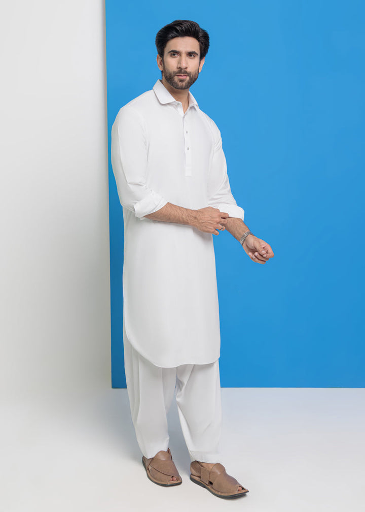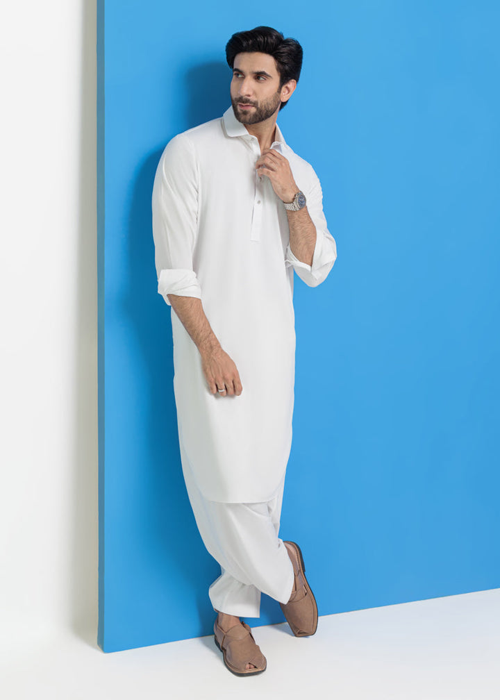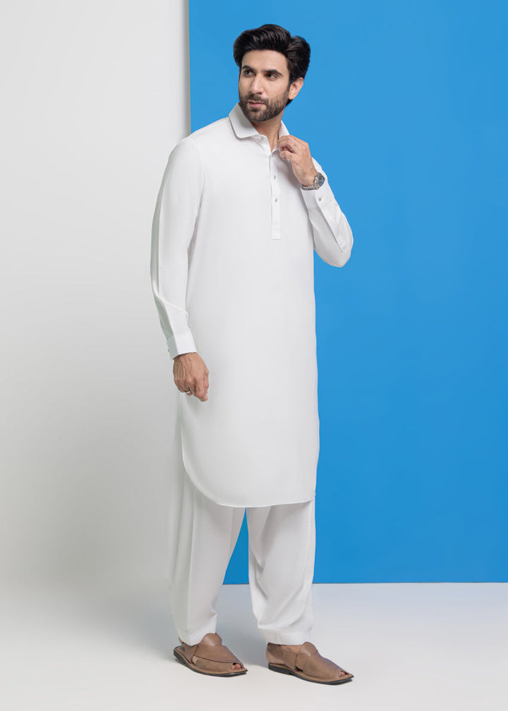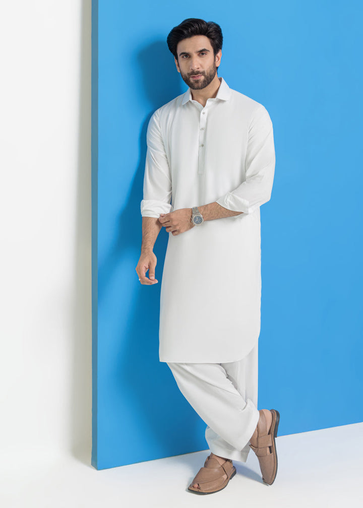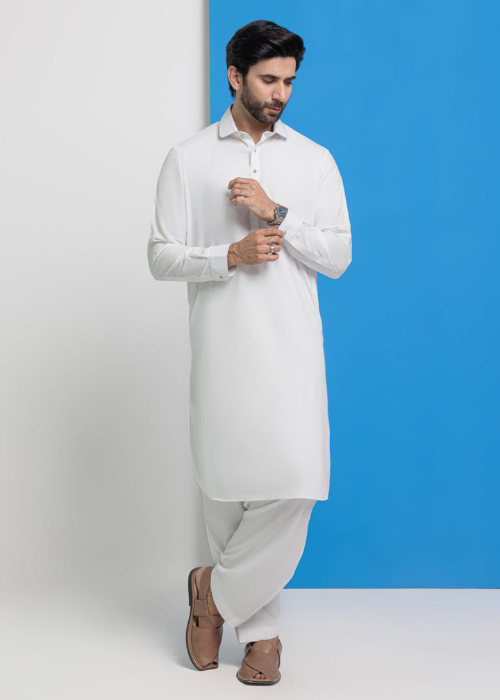 White-Blended-Shalwar Suit - (MPS25SSS2049)