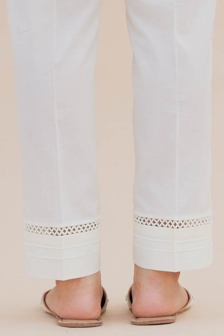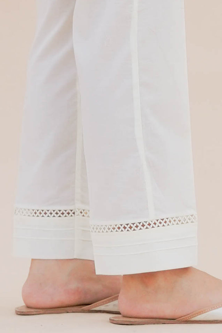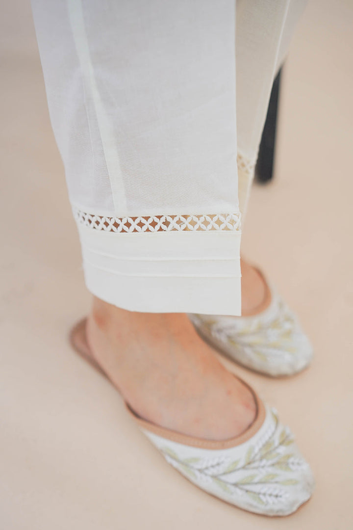 STRAIGHT FITTED CAMBRIC PANTS WITH LACE FINISH