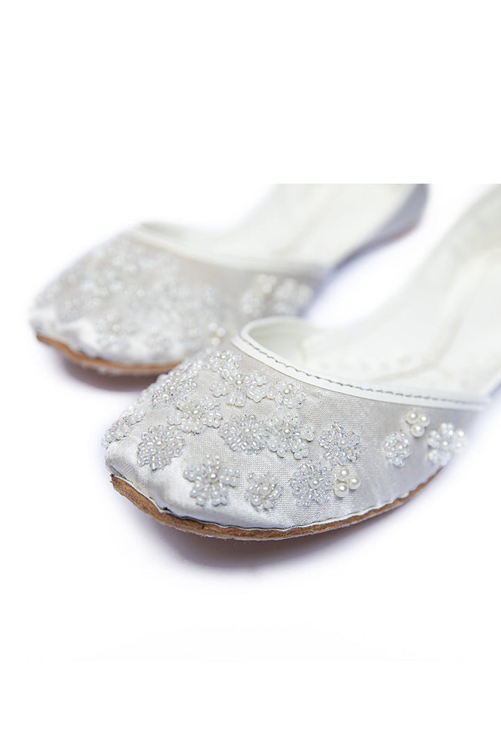 NELLY-1 is a handcrafted Khussa that showcases intricate bead work and is made from high-quality satin material. It features padded insocks for ultimate comfort and a durable leather outsole. Elevate your style with this unique and luxurious footwear.