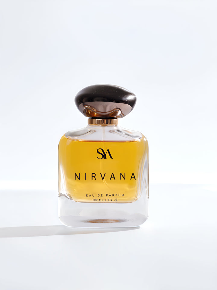 At its heart, Nirvana reveals a harmonious blend of woody cedar, aromatic lavender, and earthy patchouli, adding depth and character. This sophisticated heart is a tribute to timeless elegance and quiet confidence. As the fragrance settles, it melts into a warm, sensual base of amber, musk, and smoky oud, leaving a powerful, lingering trail that is both comforting and mysterious.