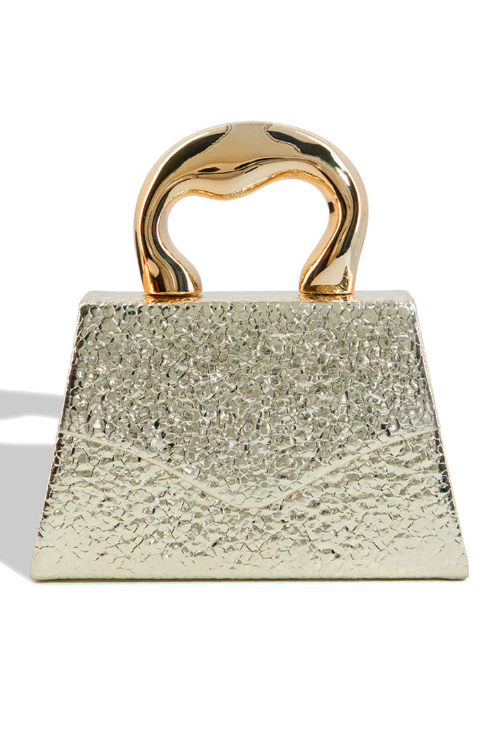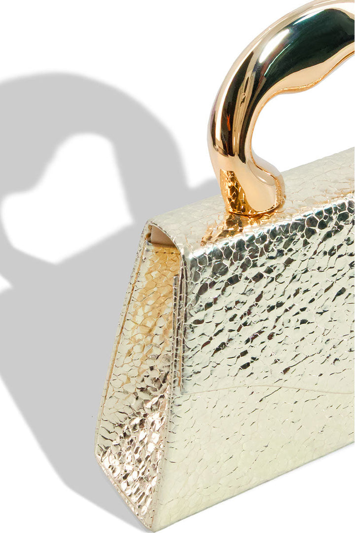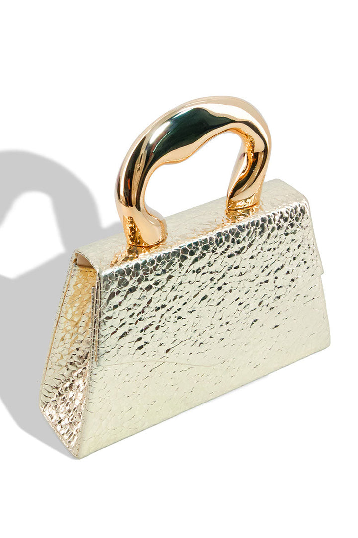 NOORA-3 is a stylish handbag in elegant gold color, made with synthetic material. At 5.7 inches in height and 8.6 inches in width, it's perfect for everyday use or special occasions. Comes with a long chain for added versatility. Upgrade your wardrobe with this chic and functional accessory.