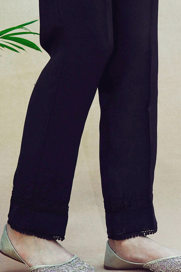 STRAIGHT FITTED PANTS WITH LACE DETAIL