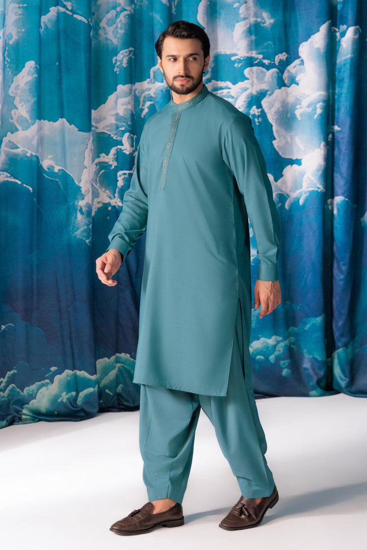 O-GREEN-BLENDED-KURTA SHALWAR - (KSRW24-004)