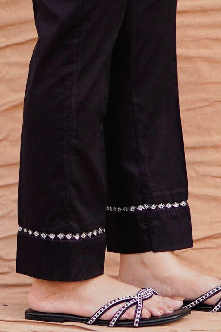 STYLE STRAIGHT FITTED CAMBRIC PANTS WITH TILLA EMBROIDERY