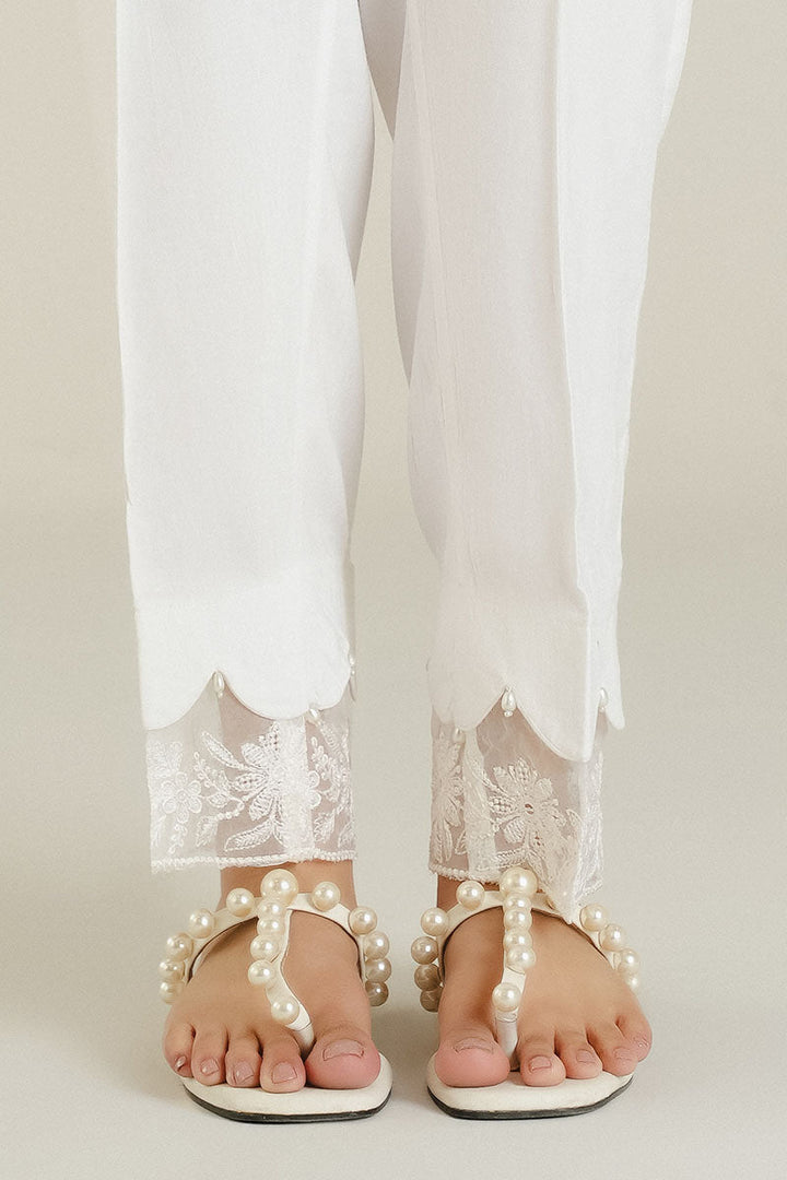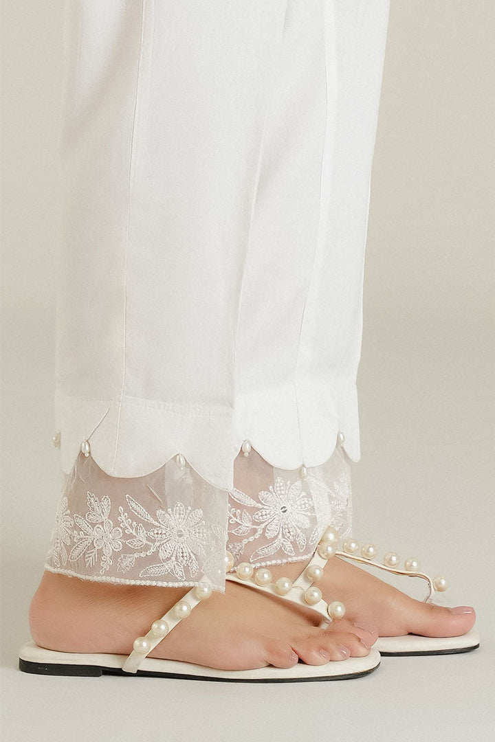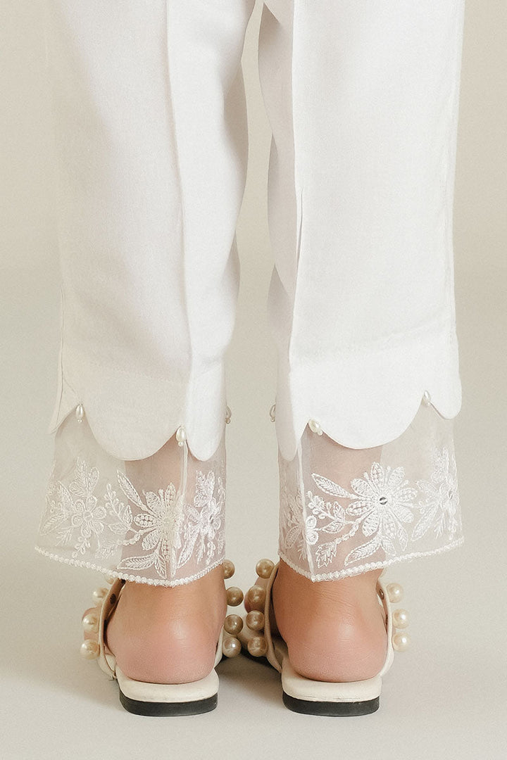 LINEN DYED AND EMBROIDERED WITH TASSELING DETAIL STRAIGHT FITTED PANTS