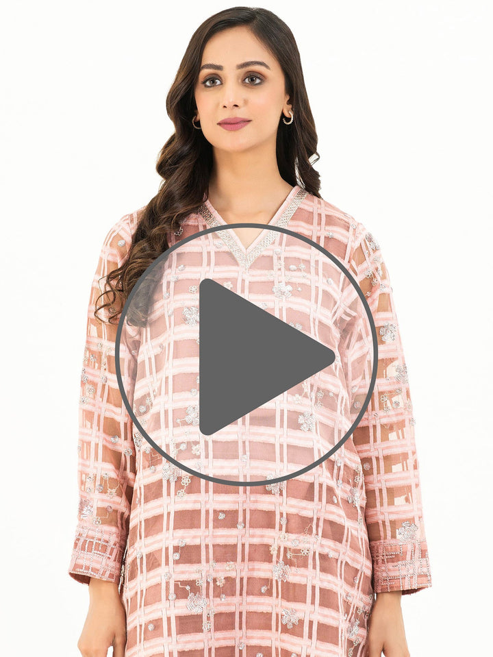 - 3 Piece Embroidered Organza Suit (Shirt+Slip+Trouser)
