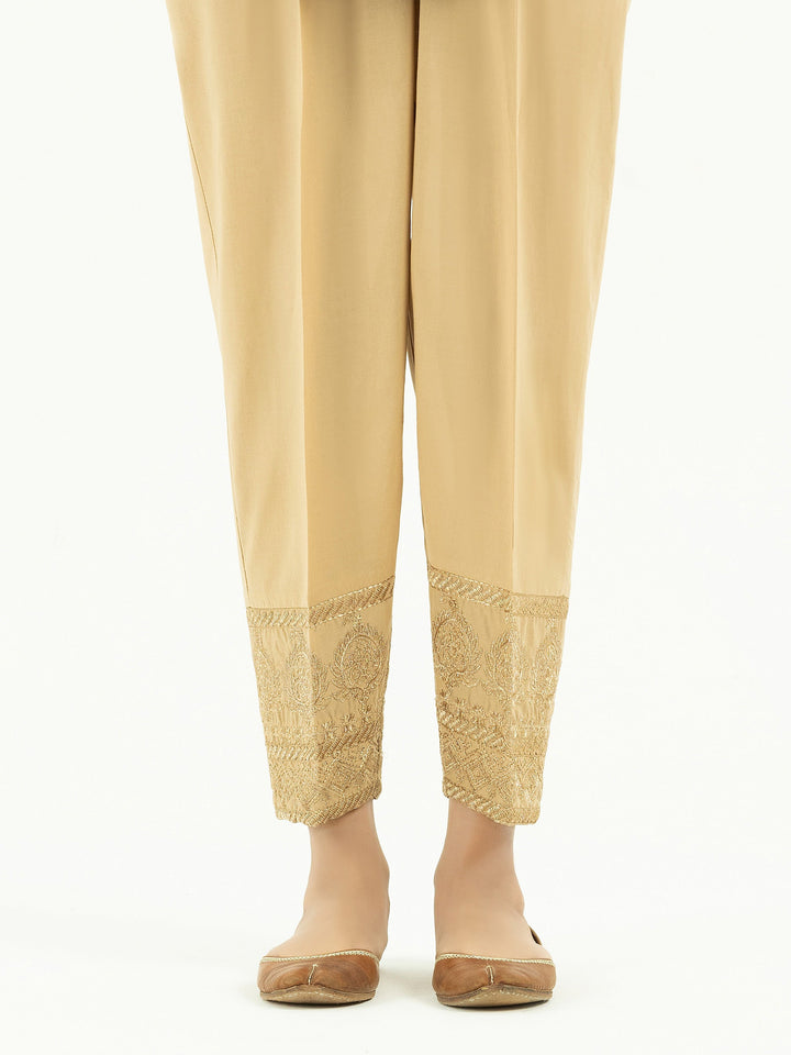 - Embroidered narrow-leg trouser with tilla embroidery on hem