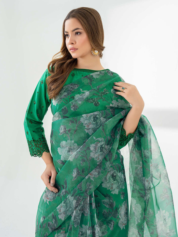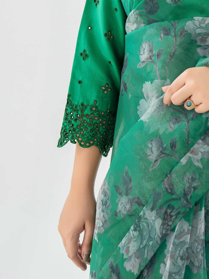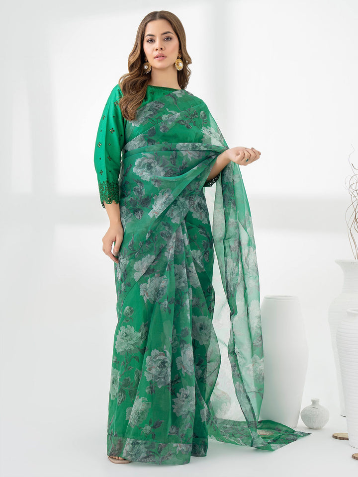 2 Piece Organza Saree-Embroidered (Pret)