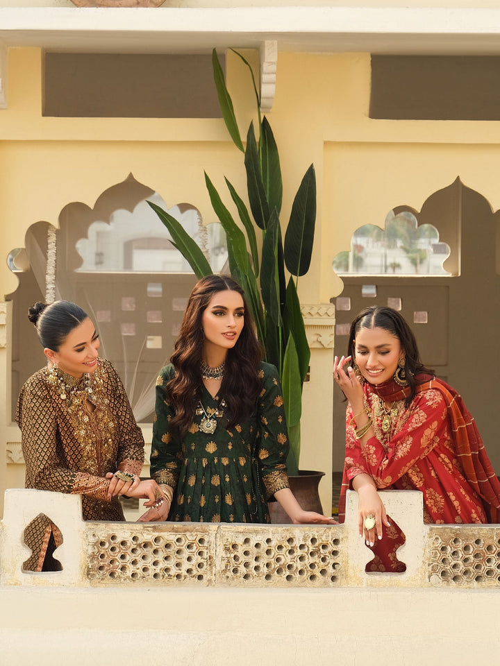 - Gold paste print angrakha frock
