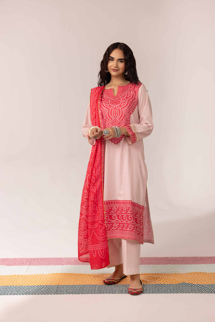 Enhance the value of the entire clothing with this printed three-piece suit from the latest pret CHUNRI summer collection.