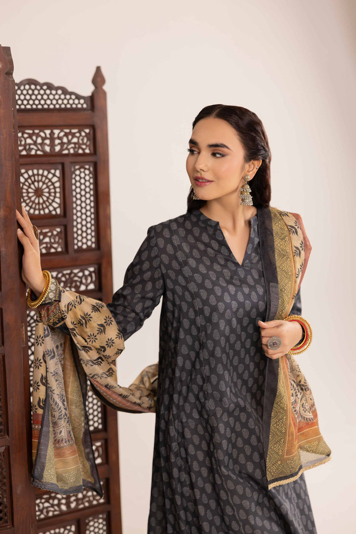 Add a sophisticated pleasing dress to your wardrobe with this printed embroidered two-piece suit from the latest pret summer collection.
