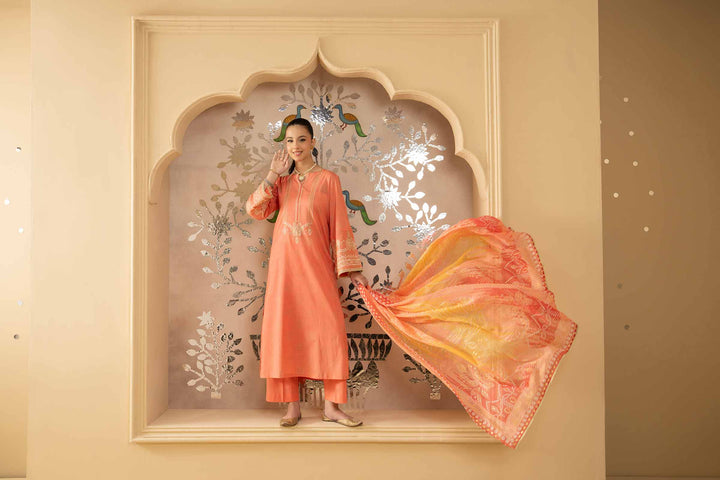 3 Piece - Printed Embroidered Suit - PE25-418