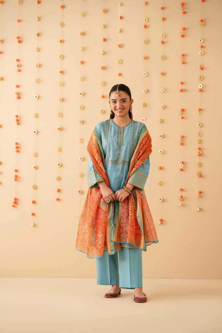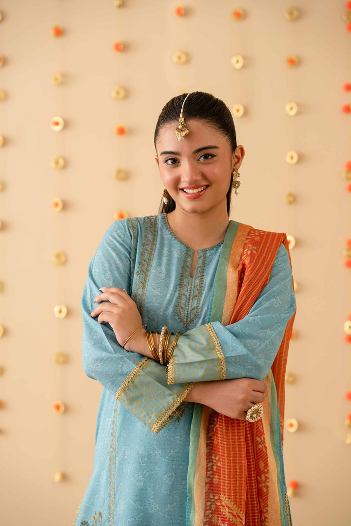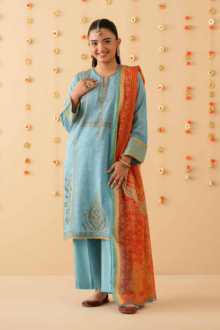 Elevate your wardrobe with this printed embroidered three-piece suit from the latest Pret summer collection, designed to enhance the value and style of your entire outfit.