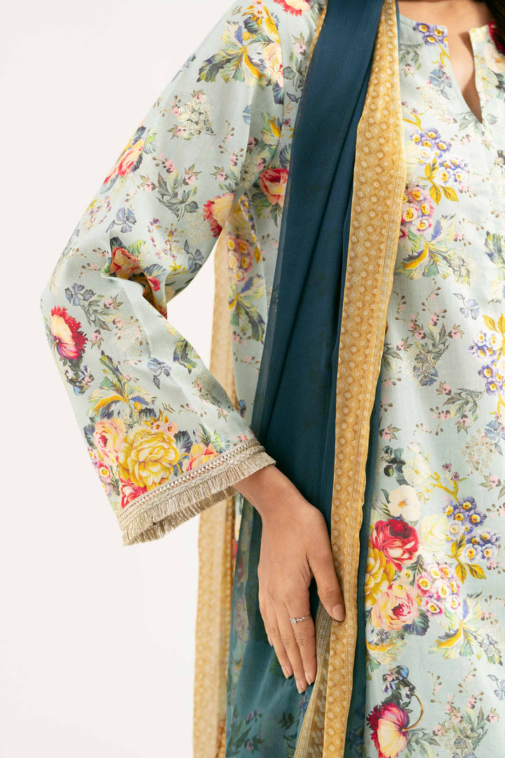 Printed Embroidered Shirt With Dupatta & Shalwar