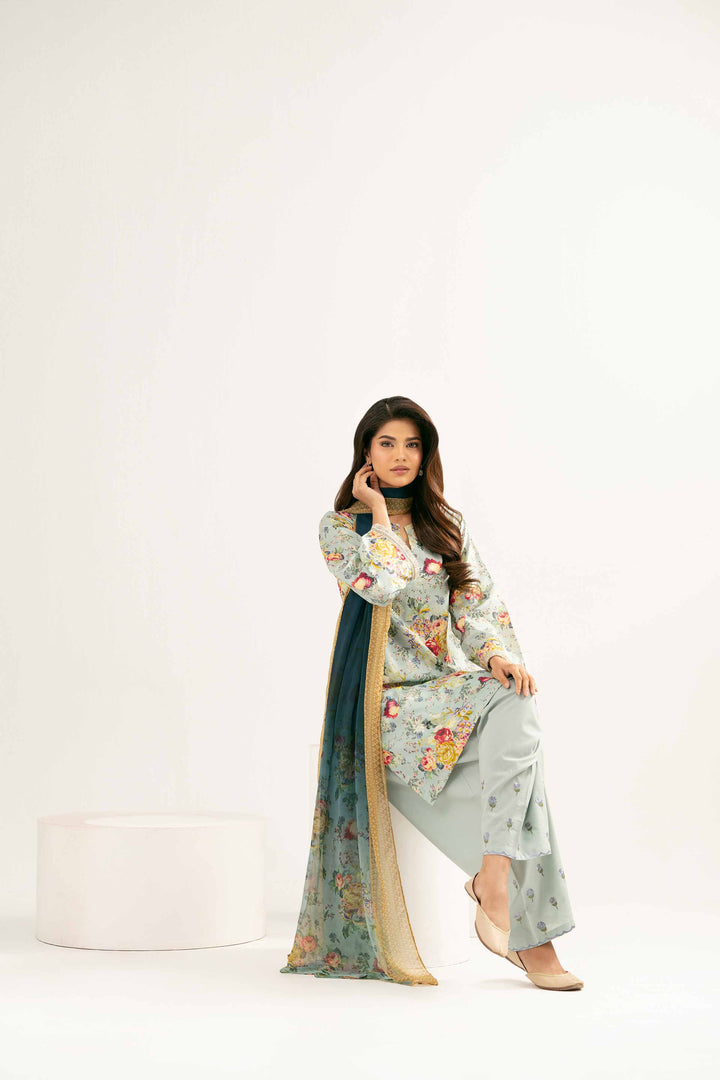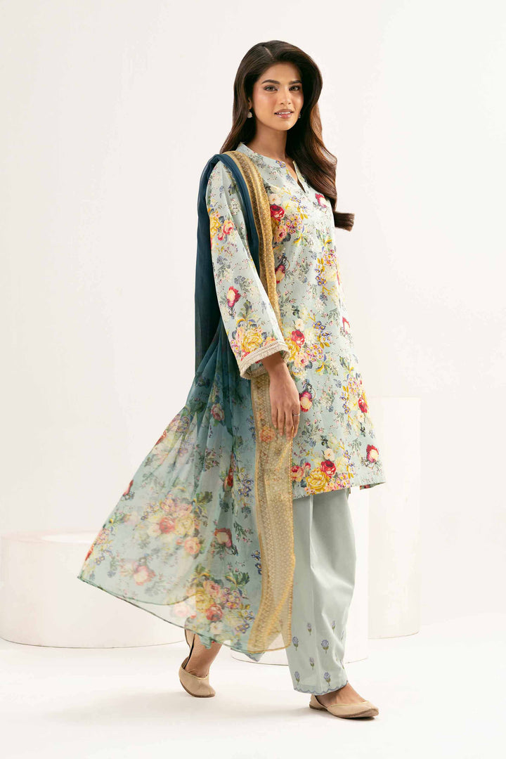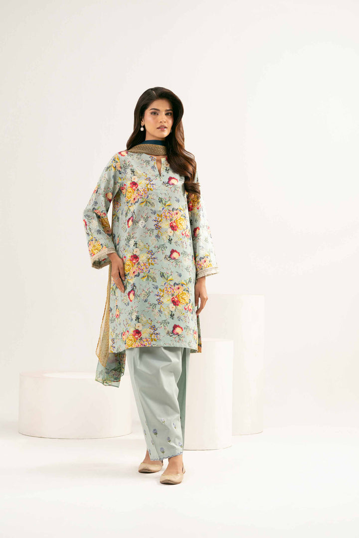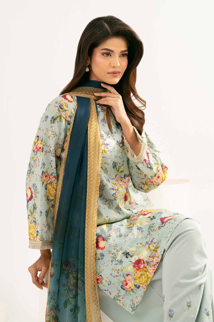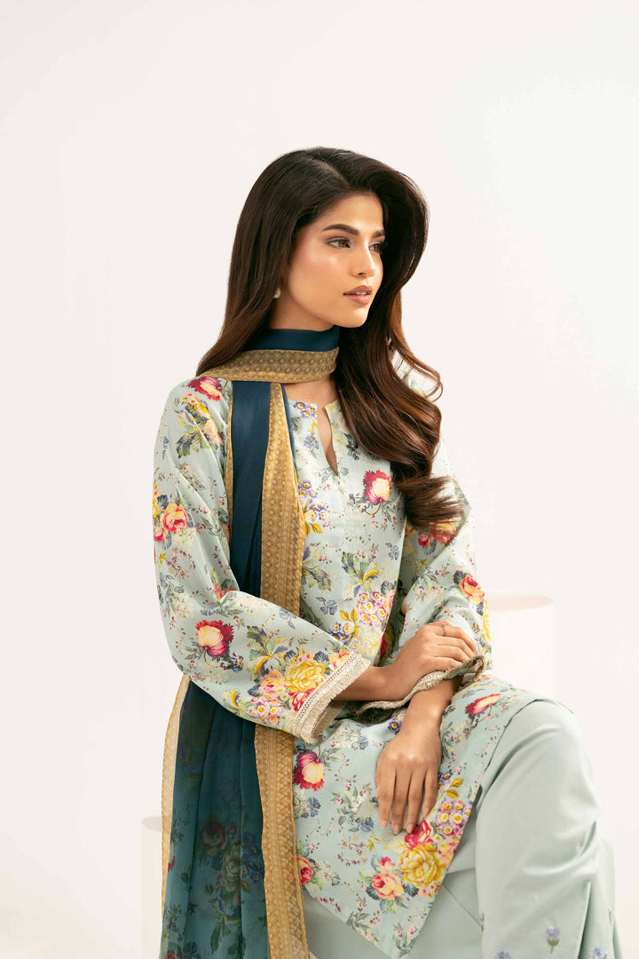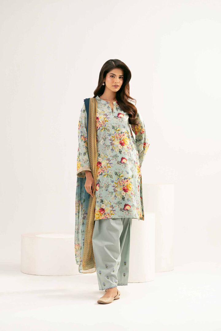 3 Piece - Printed Embroidered Suit - PE25-449