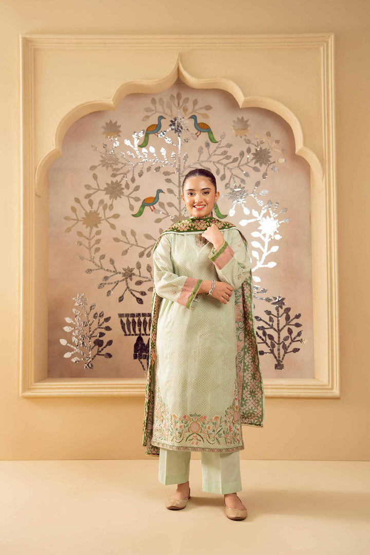Elevate your summer style with this printed and embroidered three-piece suit from the latest Pret Summer Collection, featuring vibrant patterns, intricate embroidery, and breathable comfort.