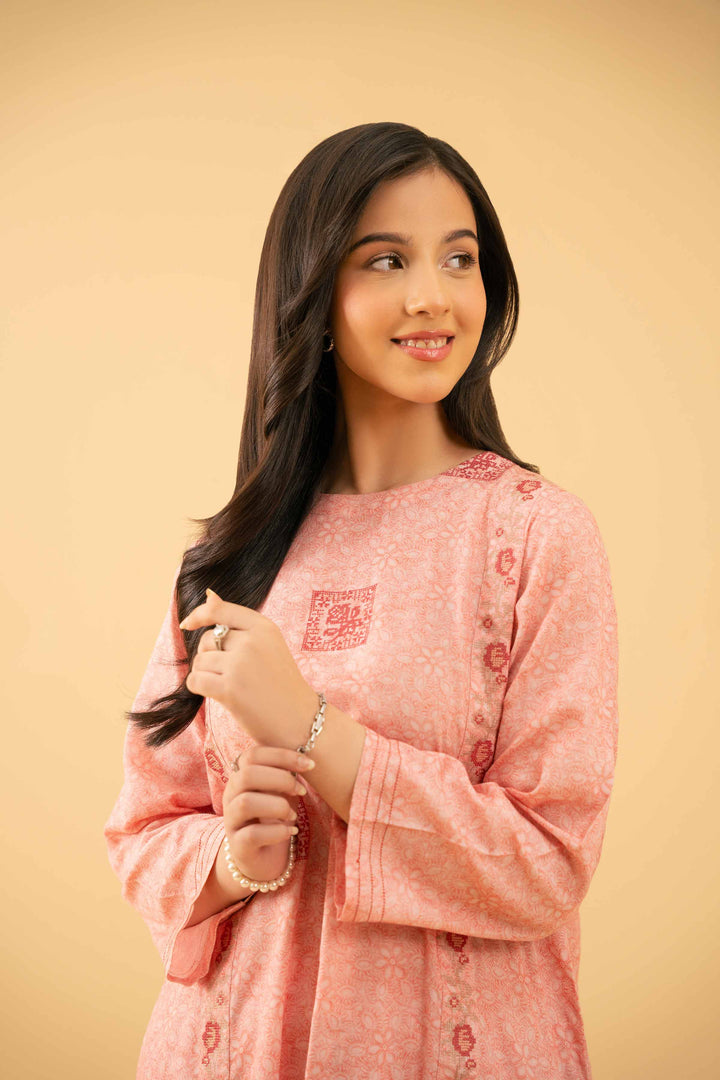 Elevate your wardrobe with this printed embroidered two-piece suit from the latest Pret Winter Collection, a flawless fusion of vibrant prints and intricate embroidery for a refined seasonal look.