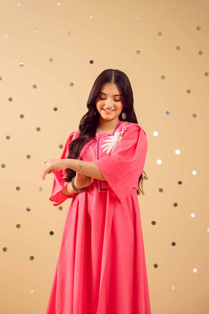 Add a vibrant pop of color to your wardrobe with this embroidered two-piece suit from the latest Pret summer collection.