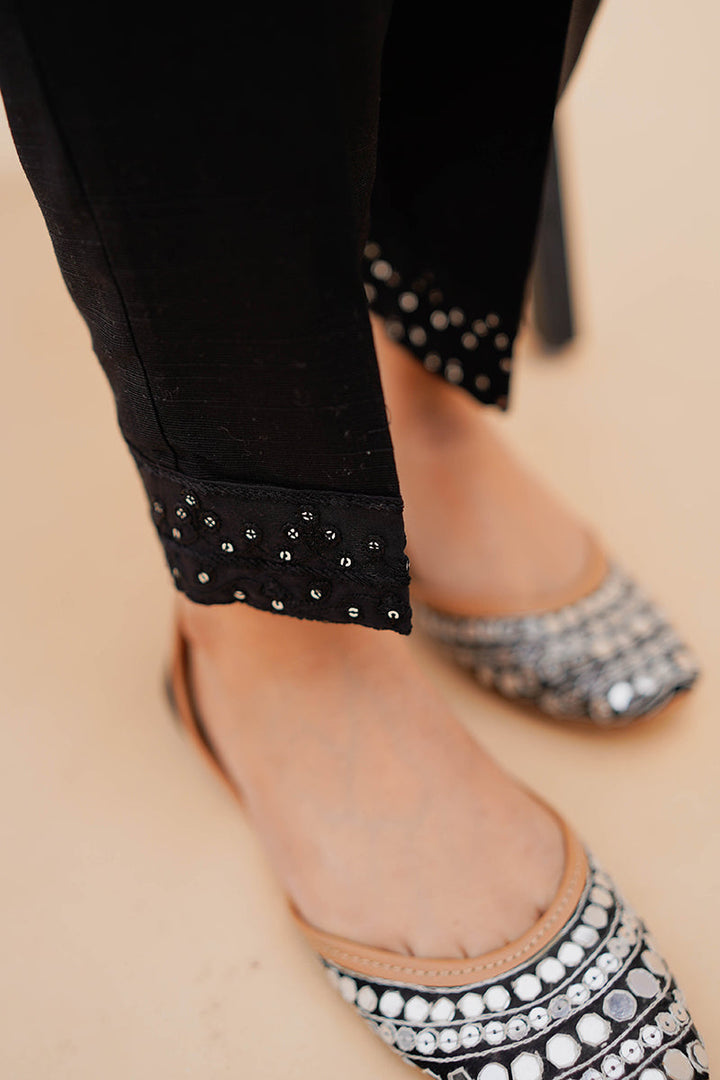 KHADDAR SEQUIN EMBROIDERED STRAIGHT FITTED PANTS