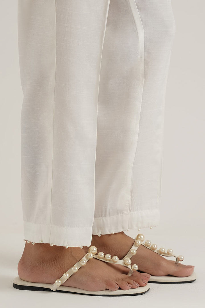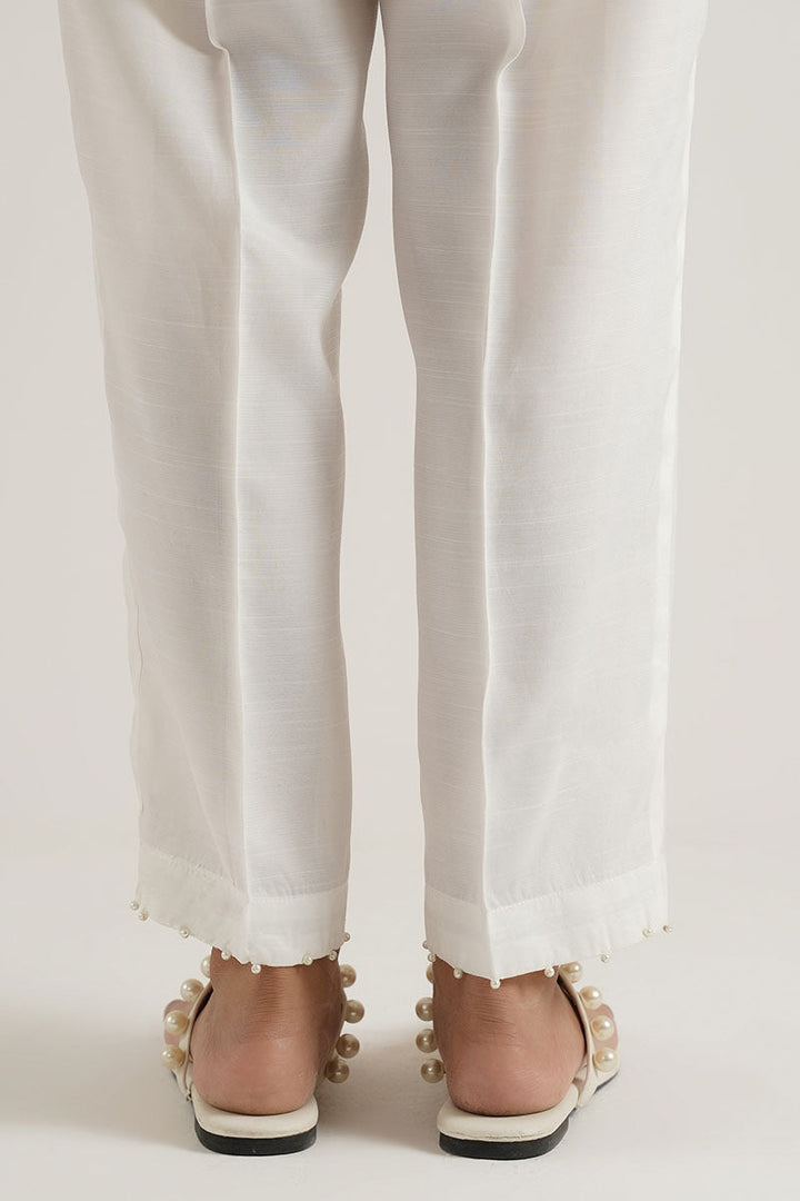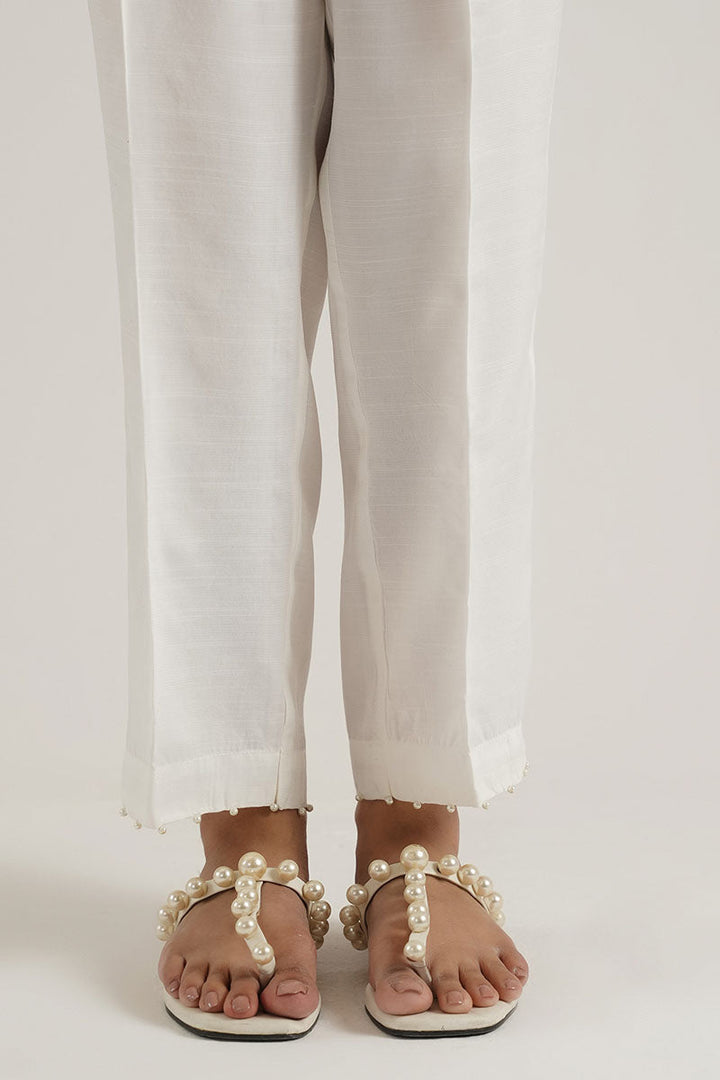 RAW SILK PEARL DETAIL STRAIGHT FITTED PANTS