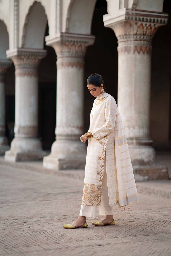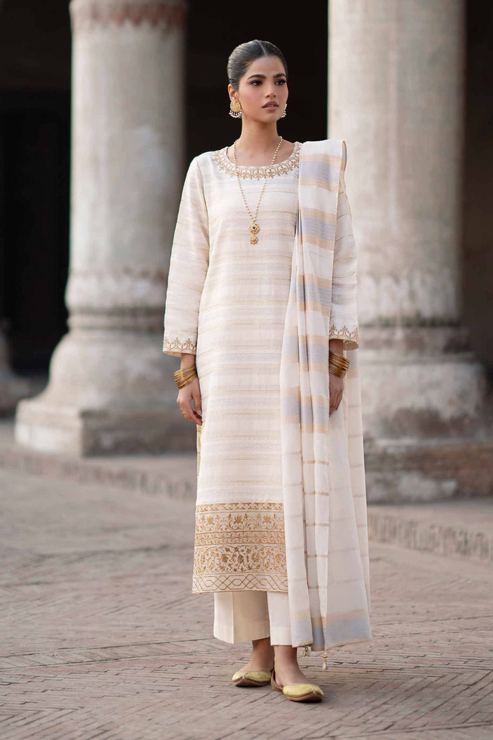 Elevate your festive wardrobe with this beautifully embroidered three-piece suit from the latest Pret Summer Festive collection.