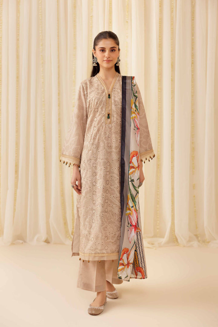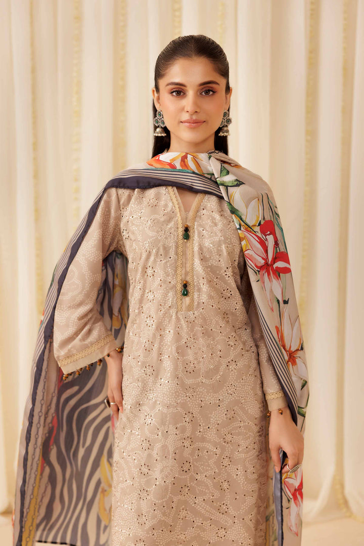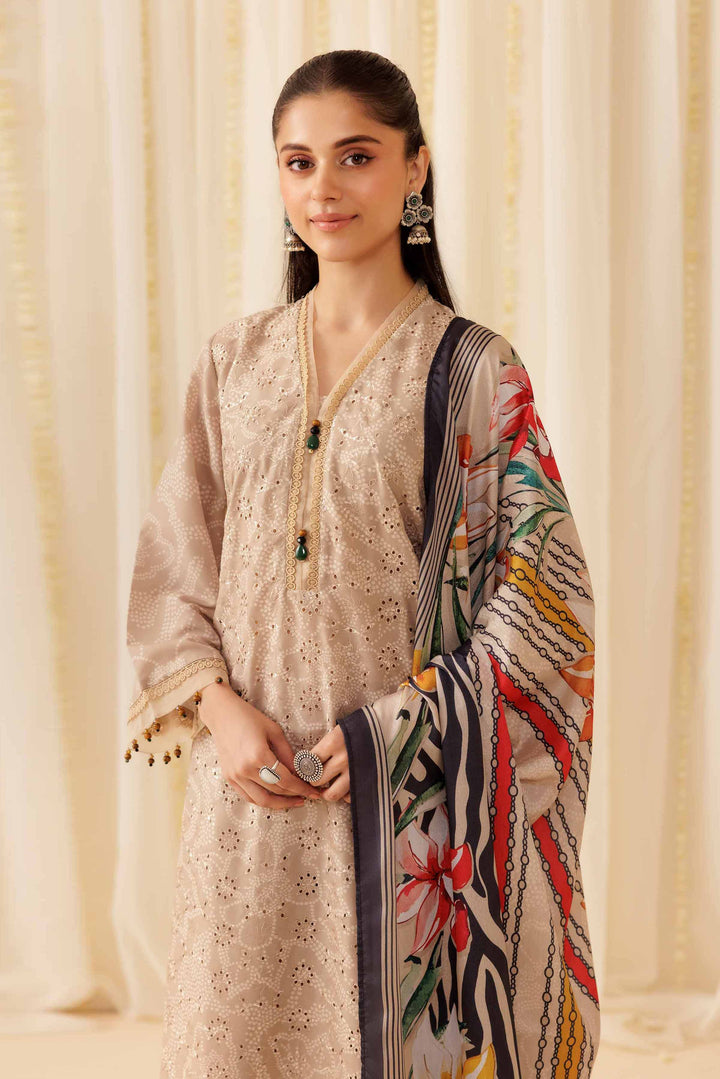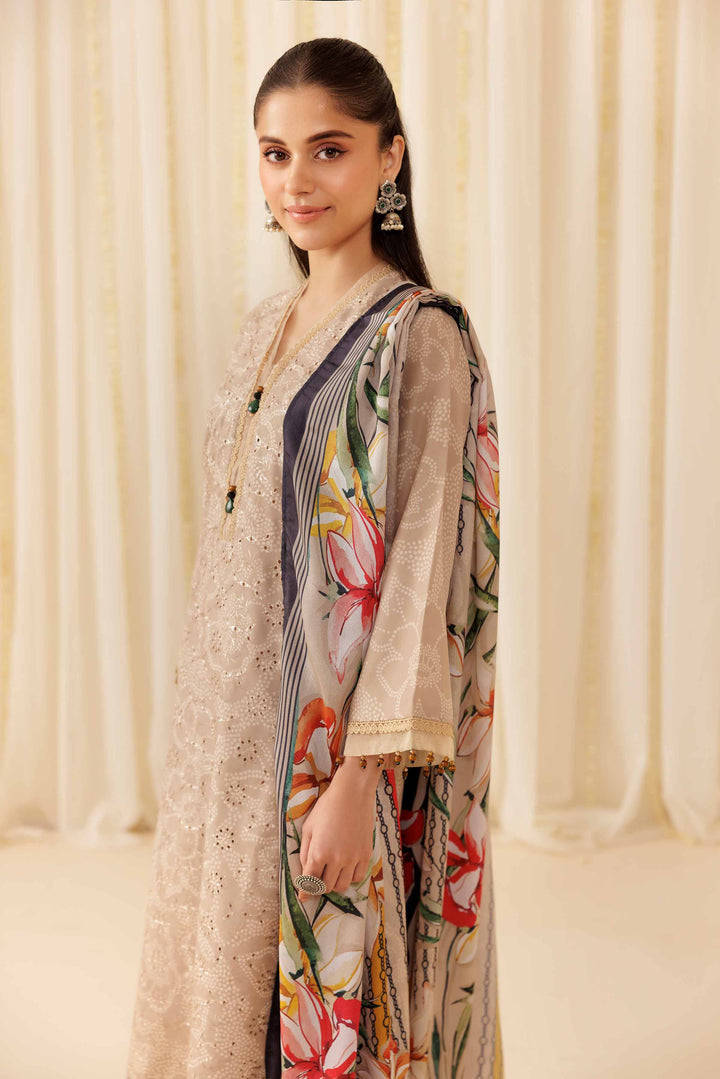 Elevate your festive wardrobe with this beautifully printed three-piece suit from the latest Pret Summer Festive collection.