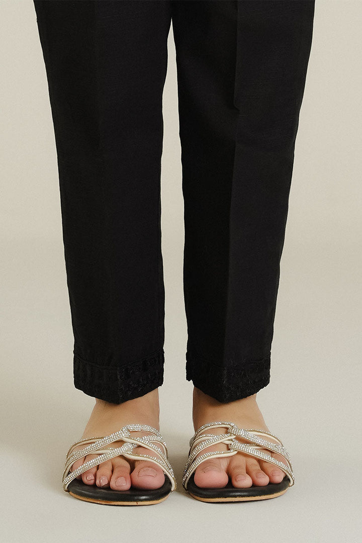 KHADDAR DYED AND EMBROIDERED STRAIGHT FITTED PANTS