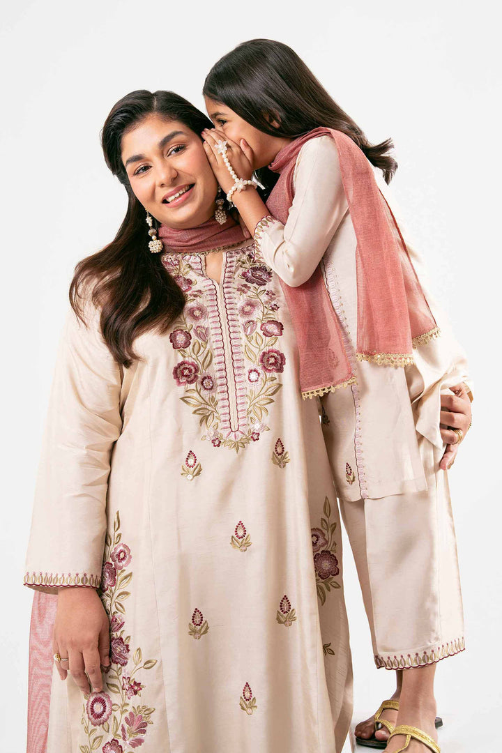 Enhance your style and create unforgettable memories with this embroidered three-piece suit from the latest Pret Mother & Daughter summer collection.