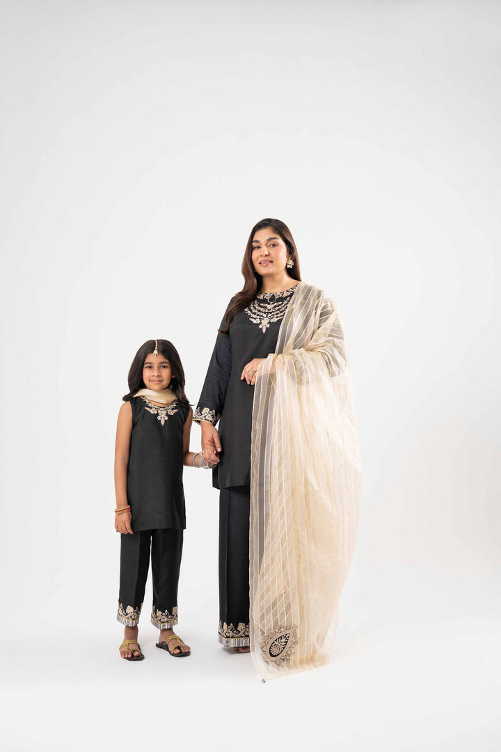 Turn heads in this embroidered three-piece suit from the latest Pret Mother & Daughter Winter Collection, designed for coordinated, elegant Winter style.
