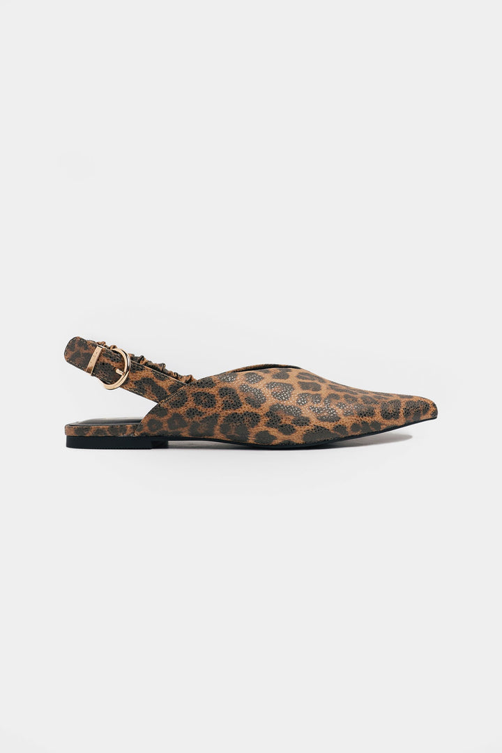 Embrace effortless chic with these sophisticated pointed slingback flats. Crafted in a versatile multi hue, these shoes are the ultimate wardrobe neutral, pairing seamlessly with everything from denim to dress wear. The design features a sharp pointed toe and a clean, minimalist vamp. The standout detail is the comfortable, ruched elasticized slingback strap, finished with a subtle gold-toned buckle, ensuring a secure and stylish fit. They offer a refined look that is perfect for all-day elegance.