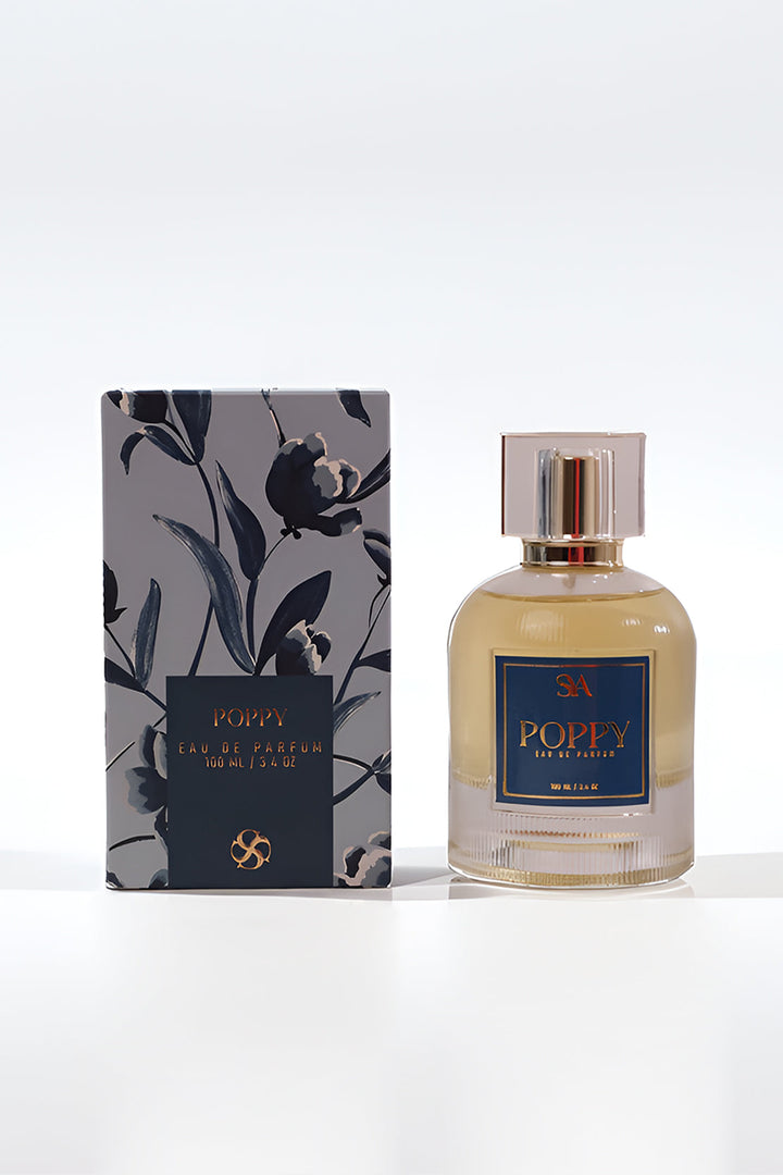The dry down is rich and sensual, anchored by a creamy base of vanilla, incense, white musk, and woods, leaving a trail that is both smooth and memorable. Poppy is for the modern romantic—a woman who embraces both grace and edge, wrapped in a scent as layered as she is.