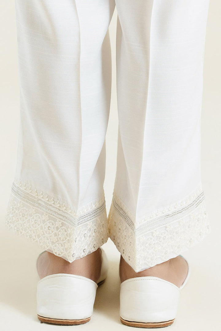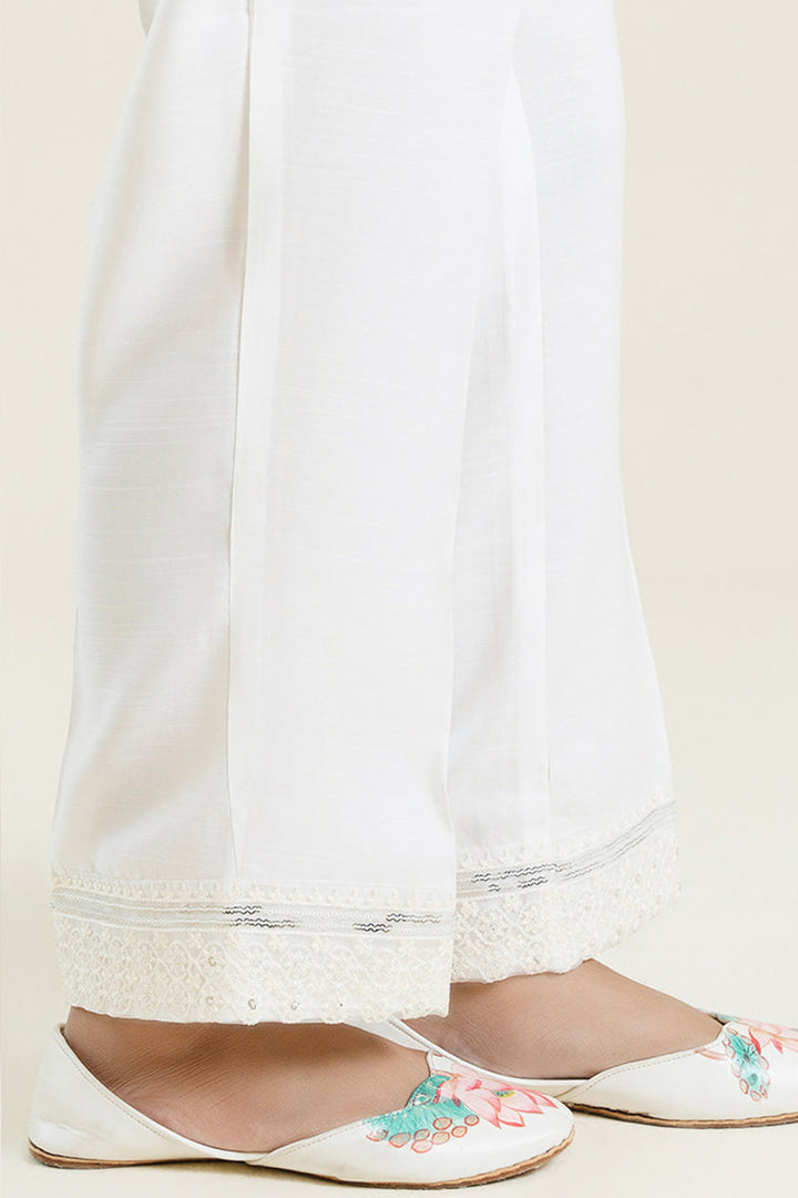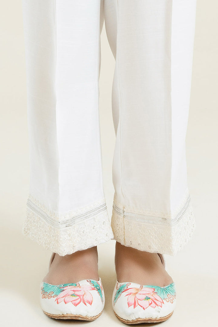 RAW SILK STRAIGHT EMBROIDERED PANTS