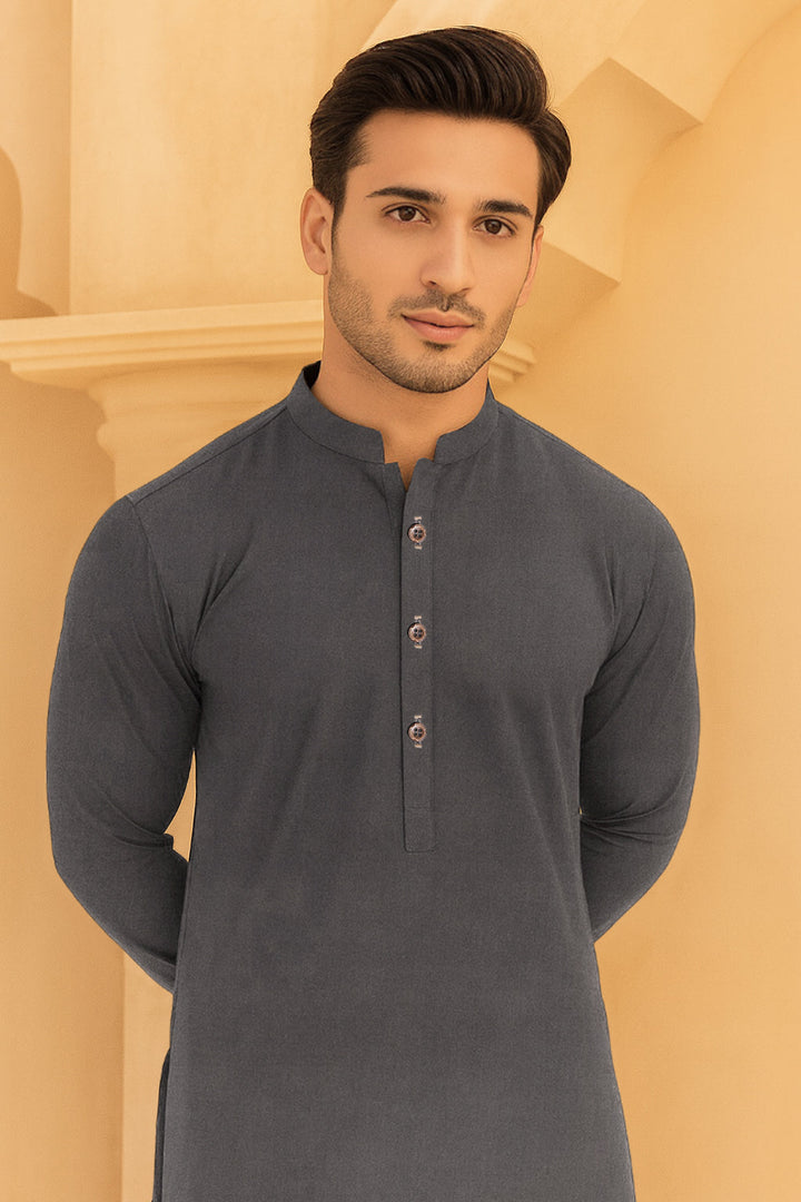 Elevate Your Wardrobe With SAYA’s Premium Blended Wear Stitched Suit. Crafted From Super Soft Wash-N-Wear Fabric In Coal, The Ensemble Features A Ready-To-Wear Solid Shirt Paired With Matching Stitched Trousers. Lightweight, Easy-To-Care, And Effortlessly Elegant, It Blends Comfort With Polished Utility—Perfect For Formal Events, Festive Celebrations, Or Smart Everyday Refinement.