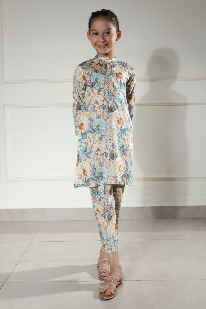 Printed Arabic Premium Lawn Stitched 2 Piece (Shirt/Trouser) For Kids